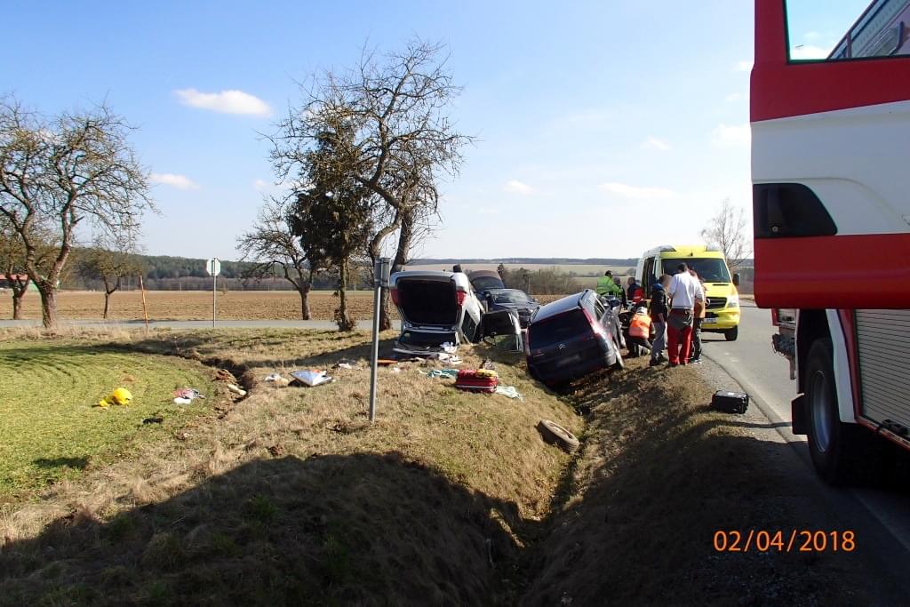 Před čtvrtou hodinou odpoledne došlo na hlavním tahu na Karlovy Vary u odbočky na Všeruby k dopravní nehodě při které se bočně střetly dva osobní vozy a po střetu skončily v příkopu. Jednalo se o boční střet dvou vozidel.