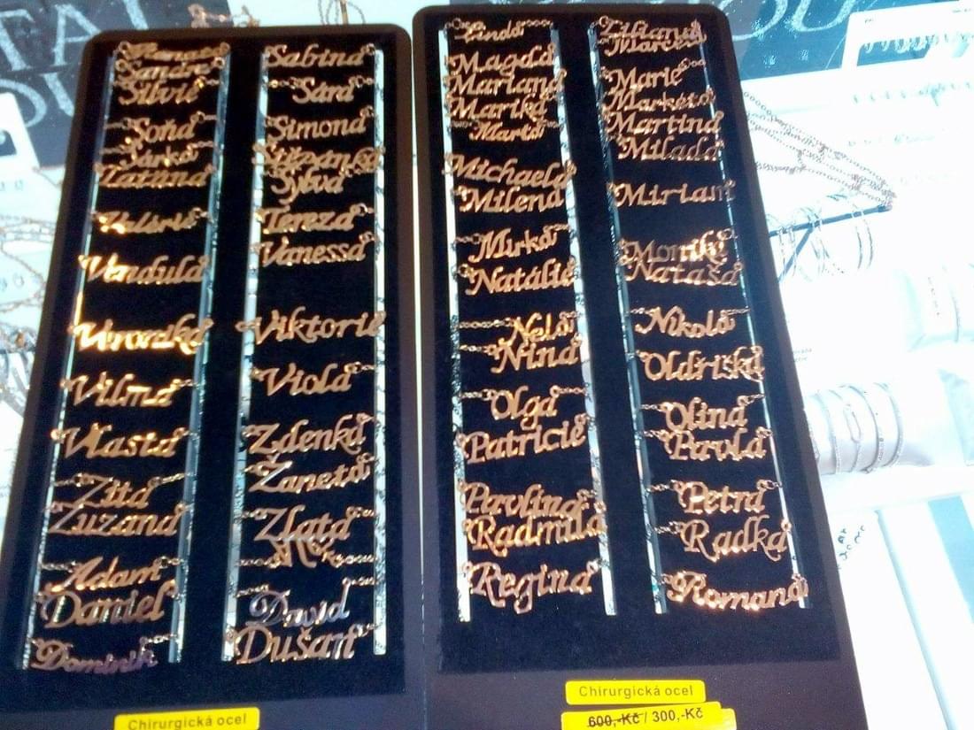 přívěšky z chirurgické oceli s křestními jmény.