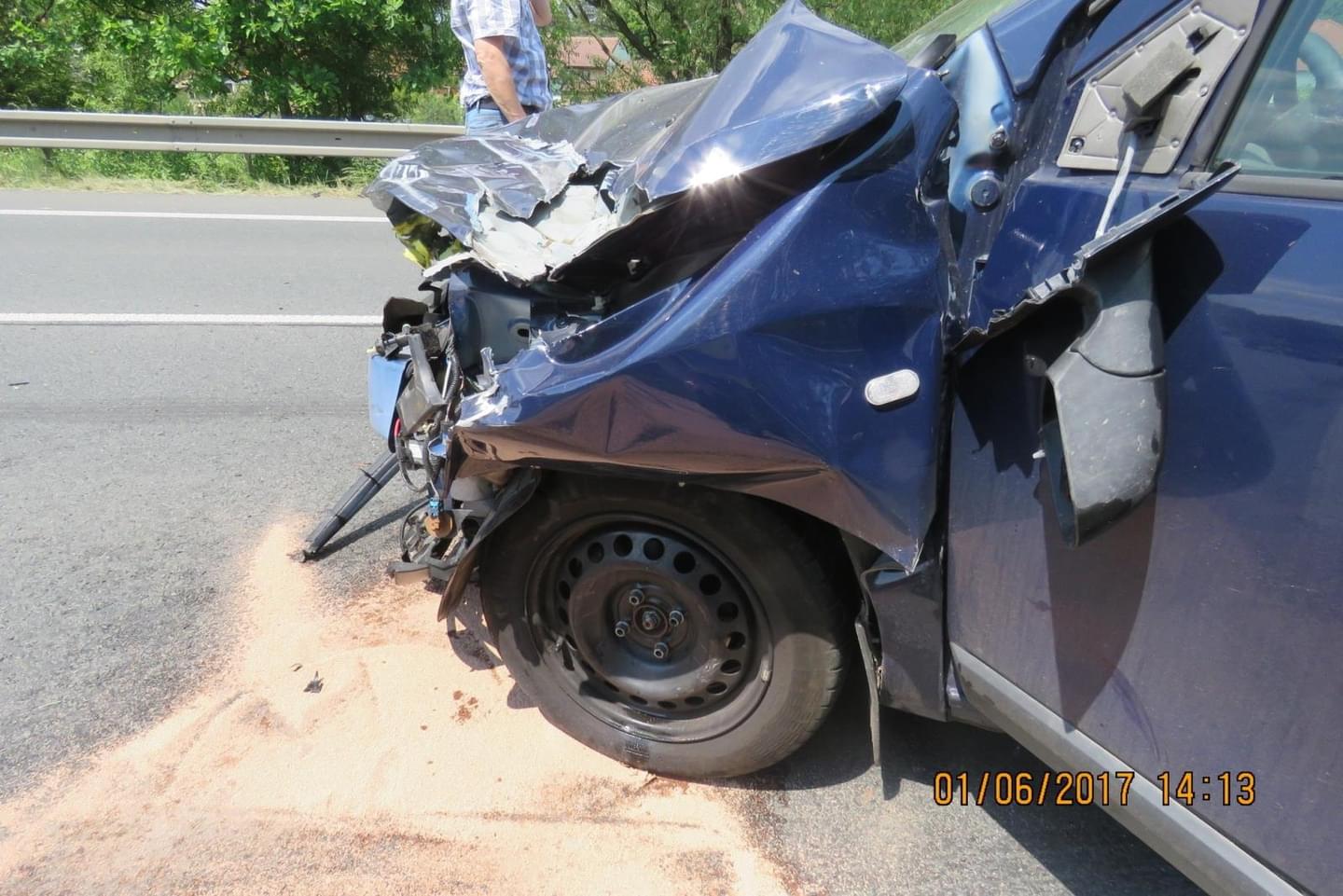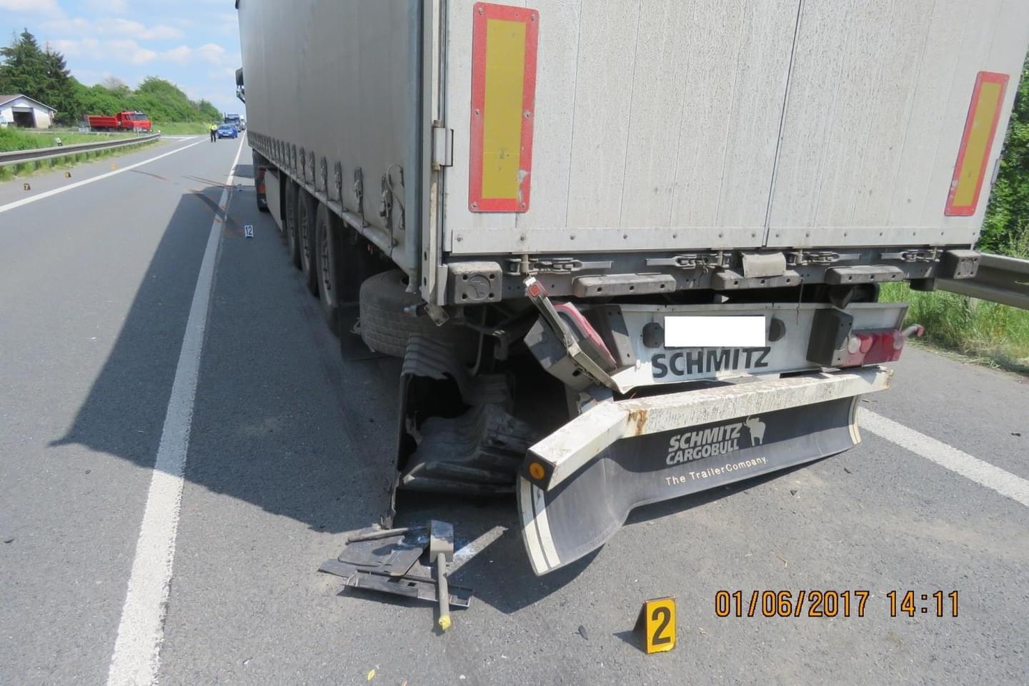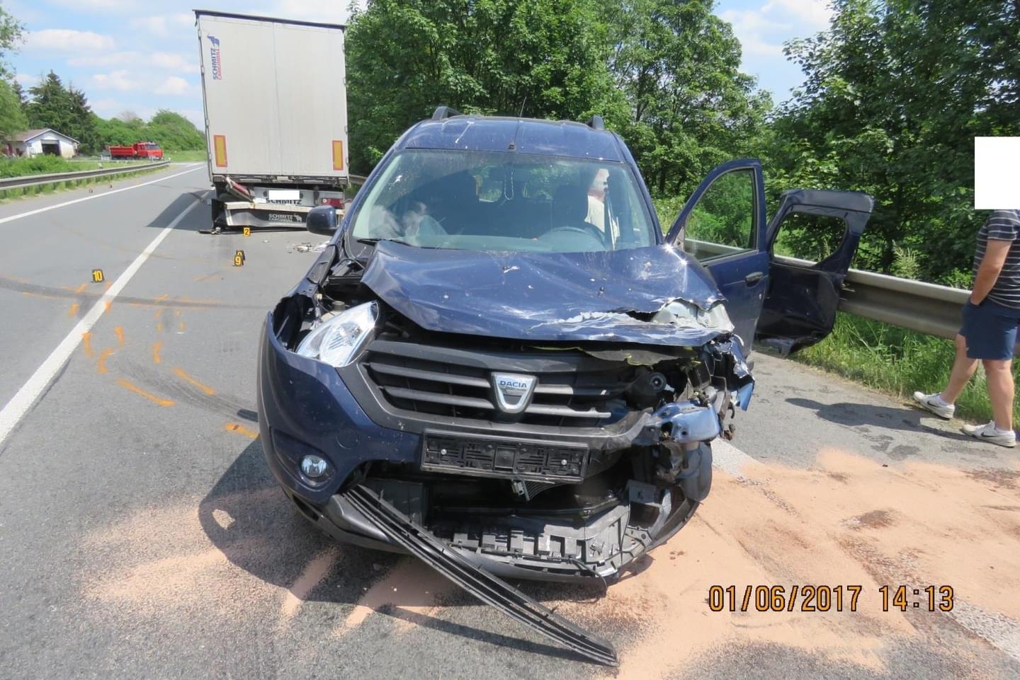 Osmačtyřicetiletý řidič nákladního vozidla tovární značky Iveco jel s vozidlem ve směru jízdy od obce Horšovský Týn na obec Semošice, a aby zabránil střetu s vozidlem, které před ním náhle snížilo rychlost jízdy z důvodů vyvolaných silničním provozem, přejel s vozidlem do protisměru, kde se bočně střetl s protijedoucím vozidlem tovární značky Dacia, které ve směru jízdy od obce Semošice řídil šestapadesátiletý řidič."Po střetu vozidel bylo vozidlo Dacia vychýleno ze směru jízdy a narazilo do levé zadní části návěsu Schmitz nákladního vozidla Volvo, se kterým jel třiačtyřicetiletý řidič za nákladním vozidlem Iveco. Vozidlo Dacia bylo po střetu odraženo na motocykl tovární značky Suzuki, se kterým pětatřicetiletý motocyklista zastavil za nákladním vozidlem Volvo," popsala nehodu tisková mluvčí policie.