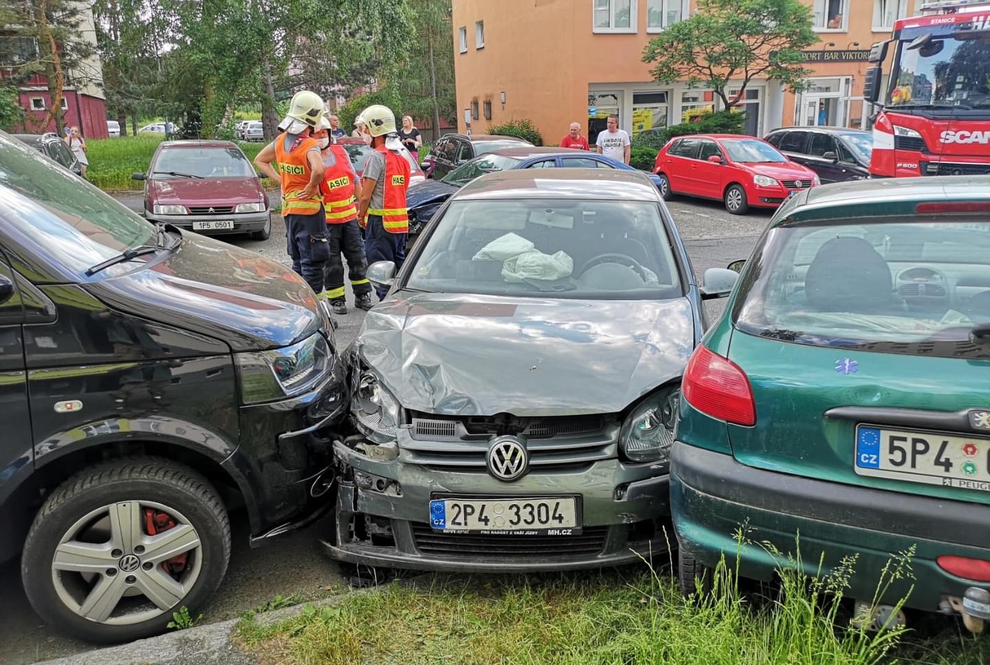 Hasiči zajistili místo nehody a zlikvidovali únik provozních kapalin. Záchranáři ošetřili a do nemocnice transportovali řidiče Škody Octavia se zraněním hlavy a asi desetiletou holčičku z Volkswagenu Golf, snad jen k observaci. Svědci nehodu popsali tak, že muž se Škodou Octavia parkoval do kolmého stání a při rovnání vozu měl povyjet právě ve chvíli, kdy ve směru od Gerské vyšší rychlostí přijel vůz Volkswagen Golf, který narazil do levé části škodovky. Tento vůz řídila žena, která vezla malou holčičku.