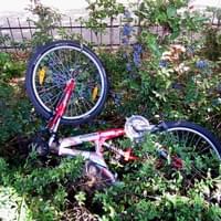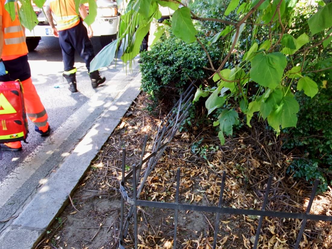 Cyklista může mluvit o obrovském štěstí, stačilo totiž jen málo a na okrasné zábradlí se mohl doslova napíchnout.