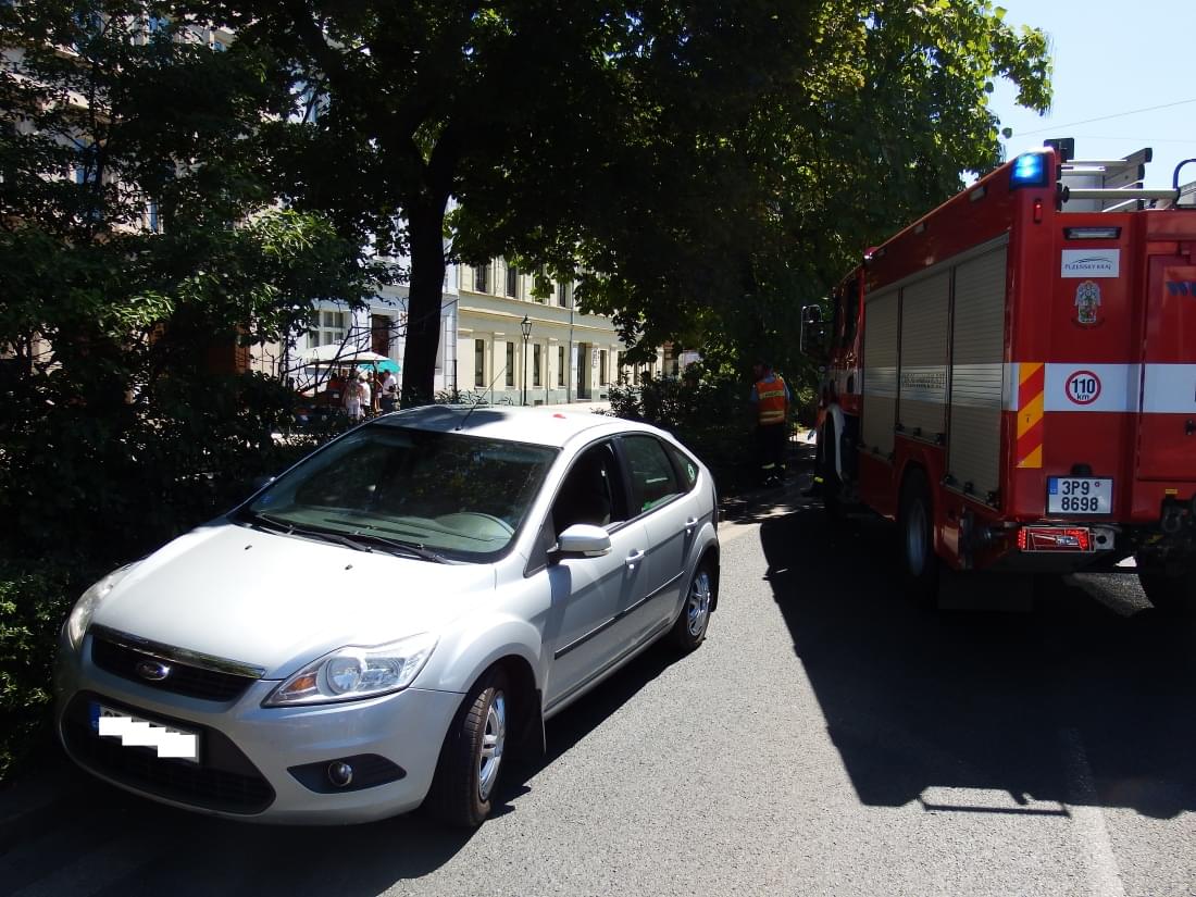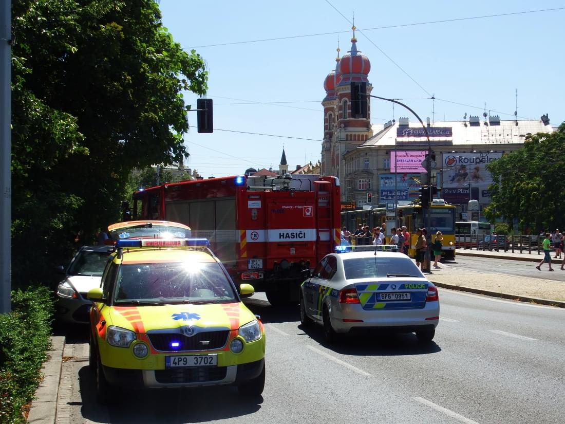 K dopravní nehodě došlo dnes před druhou hodinou odpoledne v Sadech Pětatřicátníků v Plzni.