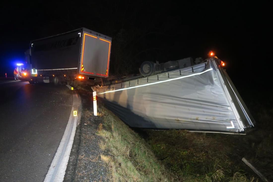 Při dopravní nehodě nedošlo ke zranění osob, vzniklá škoda na přívěsu a nákladu dosáhla 630 tisíc korun. Havárii dále šetří policisté Dopravního inspektorátu v Klatovech, požití alkoholu před jízdou policisté u řidiče vyloučili dechovou zkouškou.