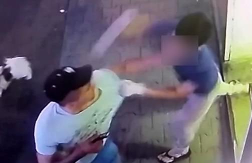 Následovala šarvátka která se přesunula ven a pak zase dovnitř, kde se do boje zapojila i mužova partnerka.