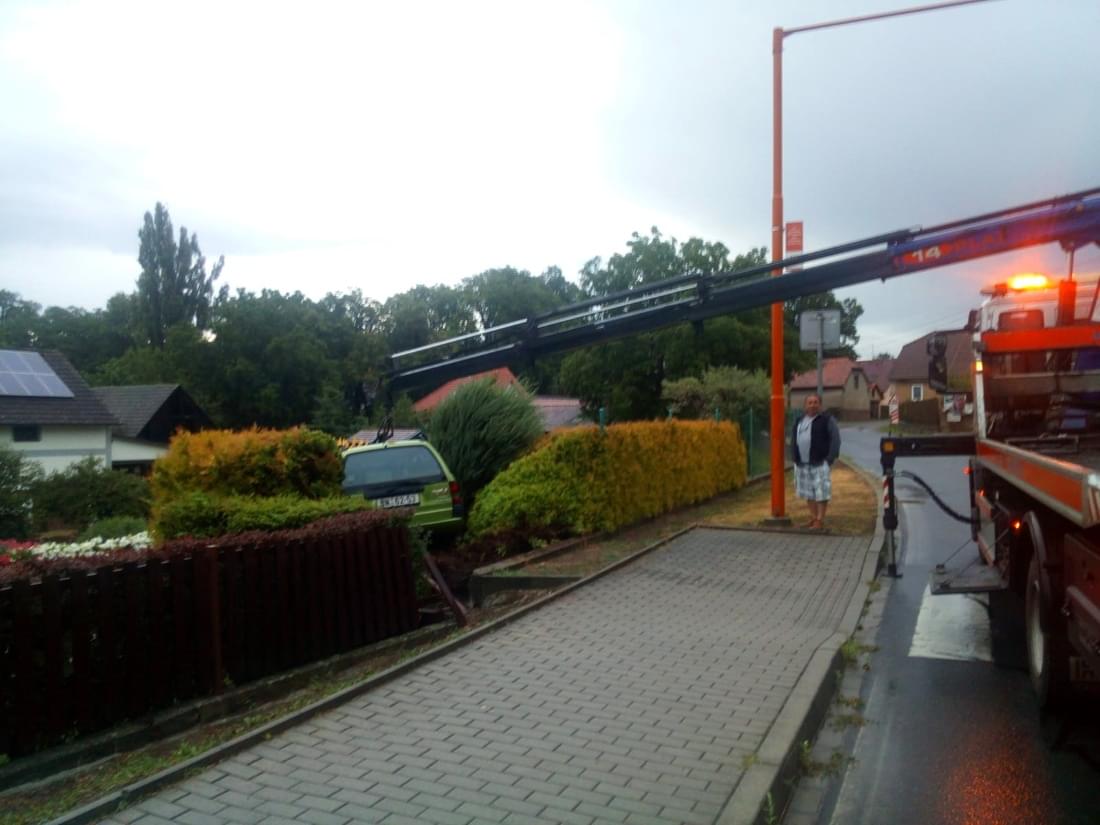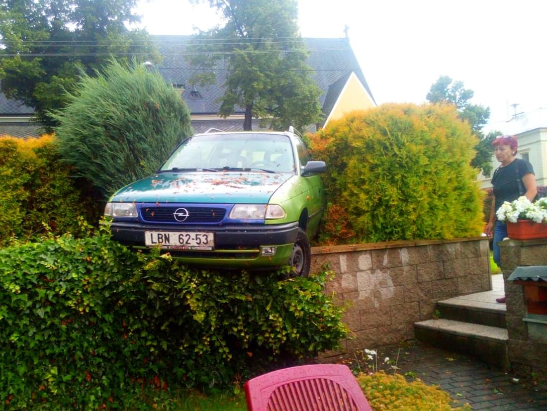 Událost byla s řidičkou vyřešena příkazem na místě, vůz musela z tújí vyprostit odtahová služba.
