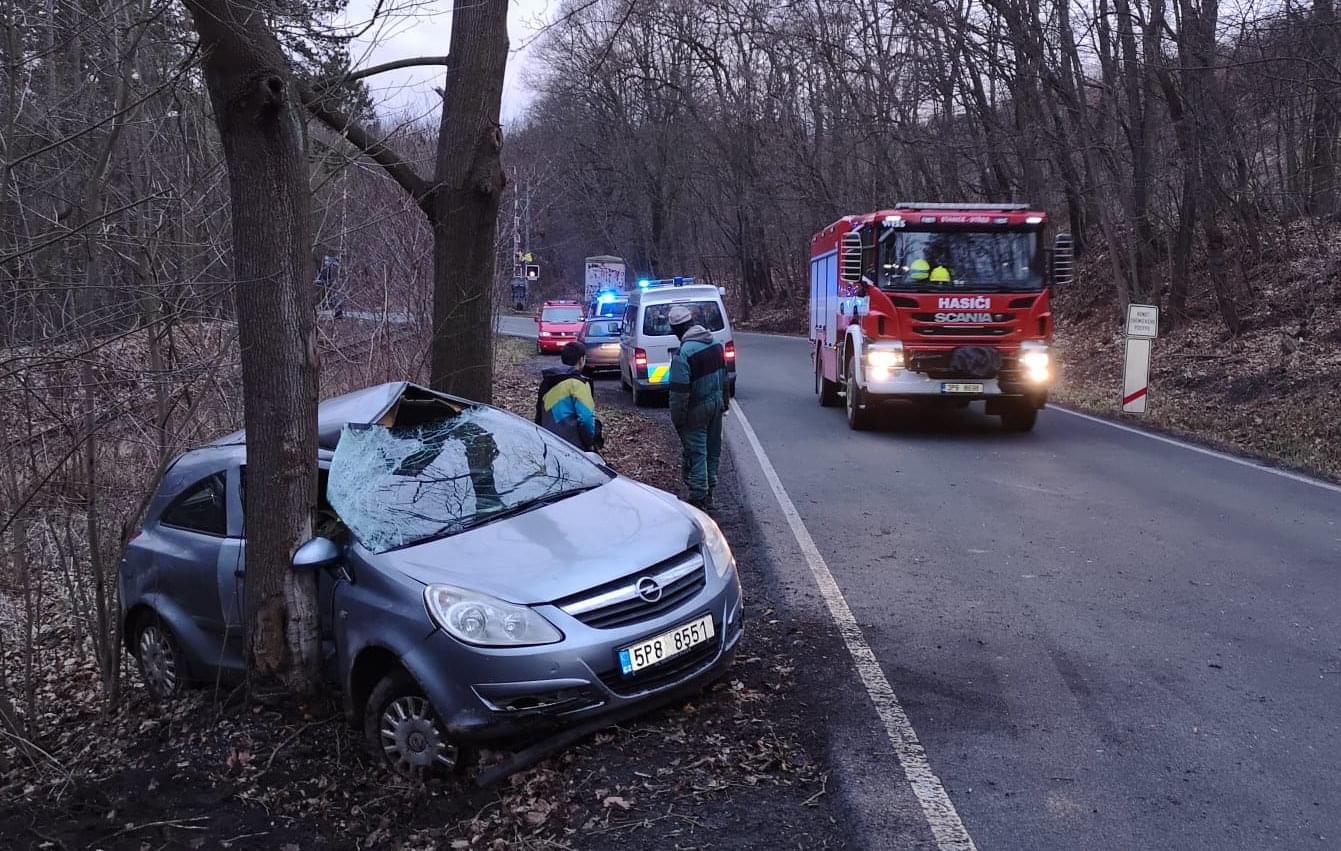 Dnes před pátou hodinou odpoledne došlo v Dobřanské ulici v Plzni, jen kousek nad železničním přejezdem, k havárii osobního vozu Opel Corsa do stromu.