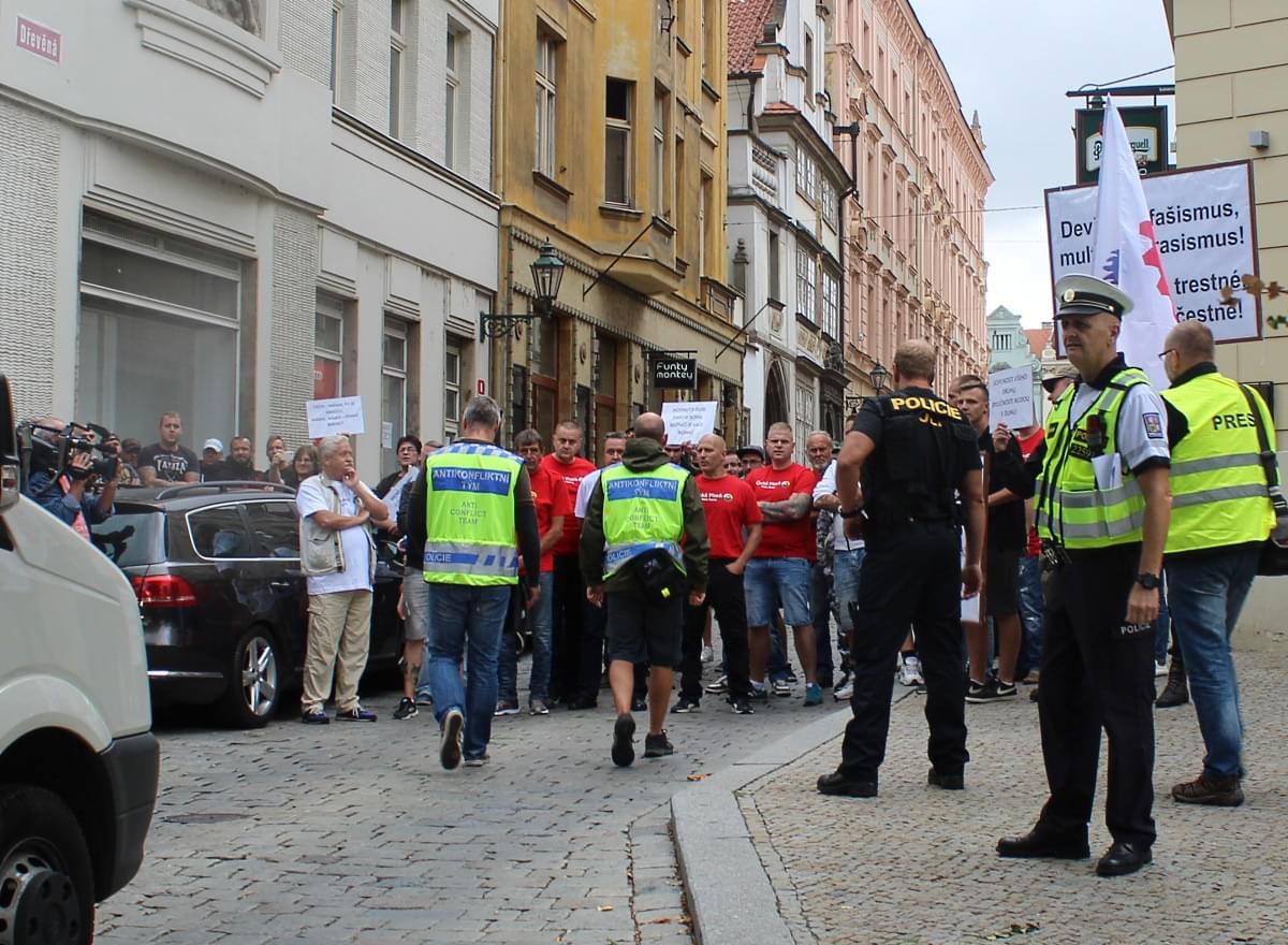 Zatímco v průvodu bylo dle různých odhadů tři až čtyři stovky lidí, odpůrců se shromáždilo pouze asi čtyřicet. Na místě samozřejmě byli policisté z pořádkové jednotky, oddělení