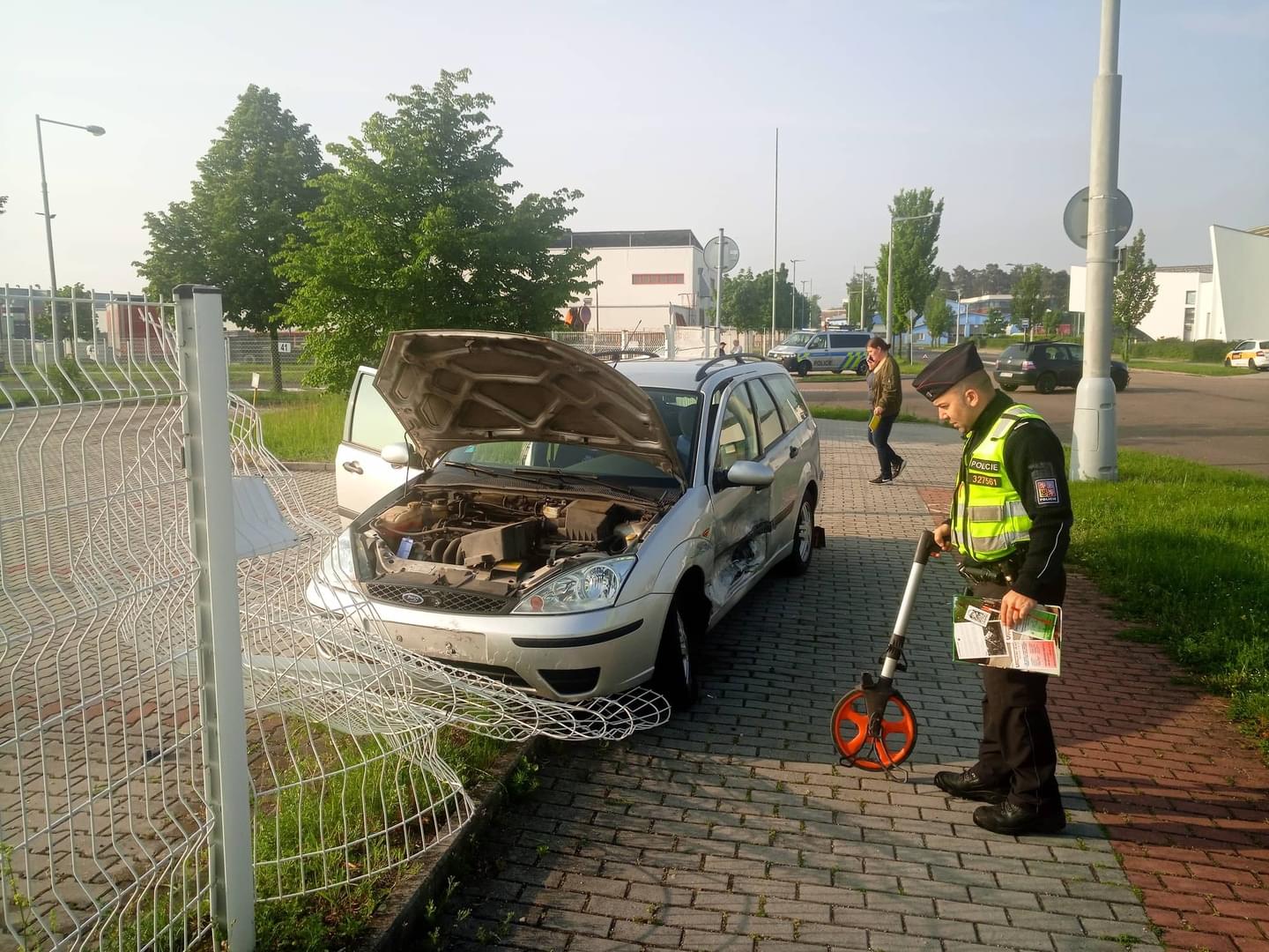 Podle svědků za nehodou stojí nedání přednosti v jízdě. K nehodě došlo tak, že Ford Focus měl jet ulicí U Panasonicu směrem od Universitní, když mu nedal přednost z leva Podnikatelskou přijíždějící VW Golf. Došlo ke střetu obou vozidel, po kterém byl Focus odmrštěn do plotu areálu a Golf byl nárazem otočen do protisměru.