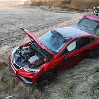 Podle informací přímo z místa řidička s vozem Škoda Octavia jela ve směru od Křimic, dostala s vozem smyk a přejela do protisměru, kde se střetla s protijedoucím vozem Renault. Ten byl nárazem odražen mimo silnici, Škoda však pokračovala dál a narazila i do vozu Ford, jehož řidič se nehodě před sebou snažil vyhnout. Poté škodovka narazila ještě do svodidel než skončila v poli vpravo mimo vozovku v původním směru jízdy.