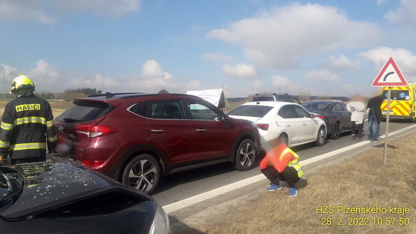 Všechny záchranné složky včera před jedenáctou hodinou dopoledne vyjížděly k hromadné dopravní nehodě, při které se před Horní Lukavicí ve směru od Přeštic střetlo šest vozidel.