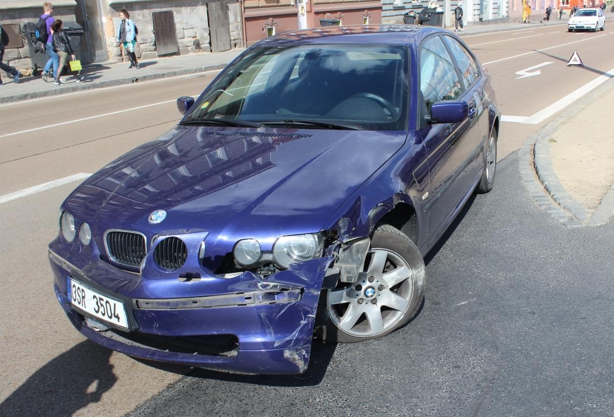 Mladý řidič jedoucí se spolujezdkyní ve voze BMW při odbočování vlevo přehlédl souběžně jedoucí tramvaj, které nedal přednost. Řidič tramvaje přes veškerou snahu již nestihl střetu zabránit.