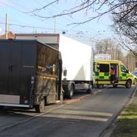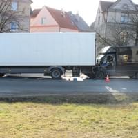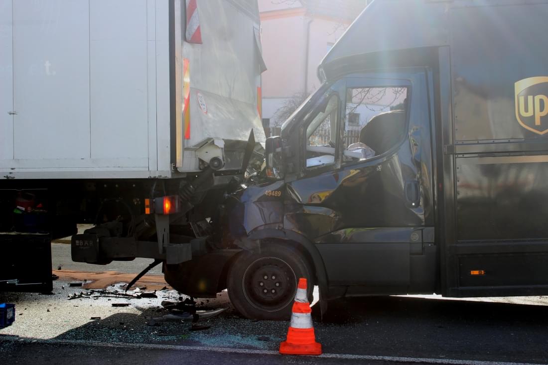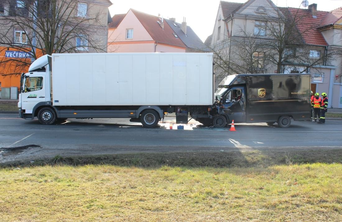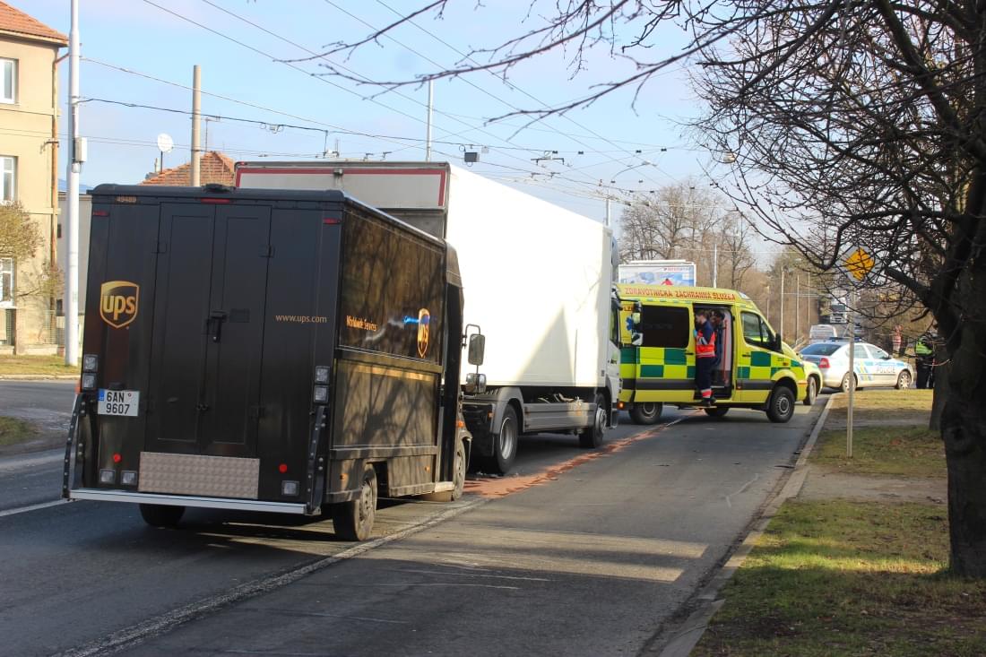 Podle informací z místa zde řidič osobního vozu Dacia Logan jedoucí směrem do centra zastavil, aby mohl odbočit vlevo. Za ním jedoucí řidič nákladního vozu sice stihl zastavit, ale řidič dodávky přepravní firmy UPS již ne a do nákladního vozu zezadu narazil. Náraz odhodil nákladní vůz na Dacii a dodávka se doslova vmáčkla pod zadní nárazník nákladního vozu.