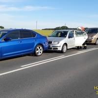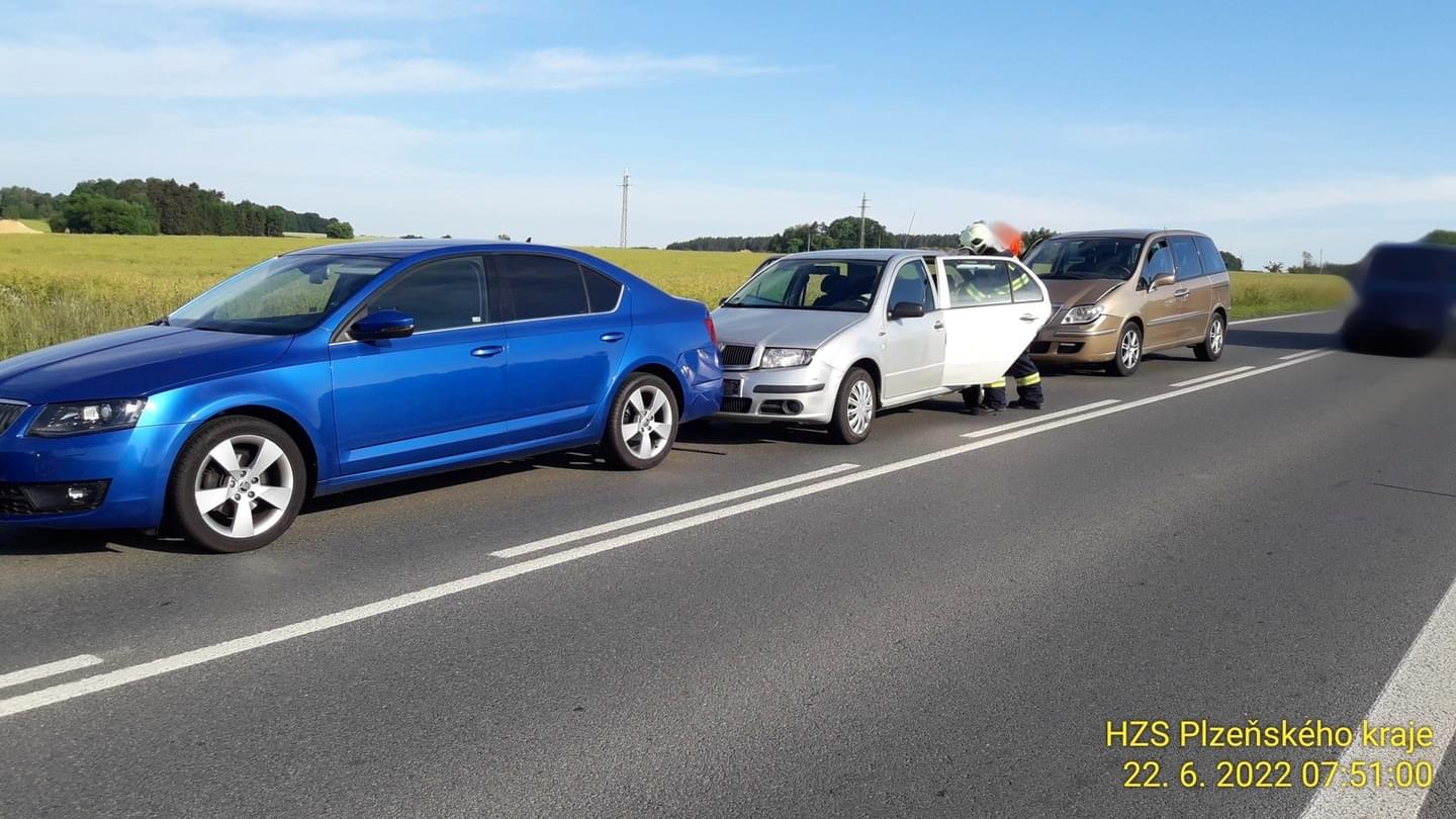 Téměř na stejném místě jako včerejší čelní střet, o kterém jsme informovali v článku Druhý čelní střet během hodiny, tedy na hlavním tahu z Plzně na Klatovy mezi Horní Lukavicí a Přešticemi, došlo dnes před osmou hodinou ráno k další dopravní nehodě, tentokrát střetu tří osobních vozů.