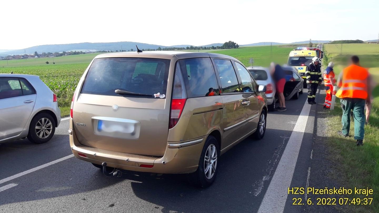 Jak k nehodě došlo popsala tisková mluvčí policie: "Řidič narozený v roce 1991 jel s vozem Lancia Phedra směrem na Přeštice, plně se nevěnoval řízení a zezadu narazil do před ním jedoucího vozu Škoda Fabia, jehož řidička narozená v roce 1993 zastavila v koloně vozidel. Nárazem byla škoda odražena na před ní stojící vůz Škoda Octavia řidiče narozeného v roce 1989. Zranění utrpěly děti narozené v letech 2018 a 2020, jedoucí ve voze Škoda Fabia."