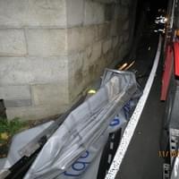 "Čtyřicetiletý řidič nákladního automobilu tovární značky Mercedes Benz s přívěsem Panav při jízdě ve směru od centra obce Kout na Šumavě na obec Kdyně nerespektoval svislé dopravní značení Zákaz vjezdu vozidel, jejichž okamžitá výška přesahuje vyznačenou mez, vjel pod železniční most, který svým vozidlem poškodil," popsala tisková mluvčí policie.