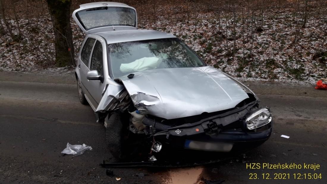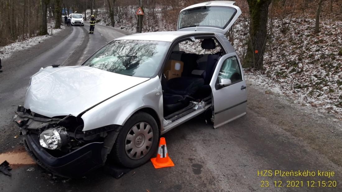Dnes kolem půl dvanácté dopoledne došlo pod Výhledy nedaleko Klenčí pod Čerchovem k havárii osobního vozu. "Padesátiletý řidič vozidla Volkswagen Golf jedoucí od Klenčí na Výhledy na namrzlé vozovce nepřizpůsobil rychlost jízdy a při průjezdu zatáčkou dostal smyk, následkem kterého havaroval do stromu," popsala tisková mluvčí policie.