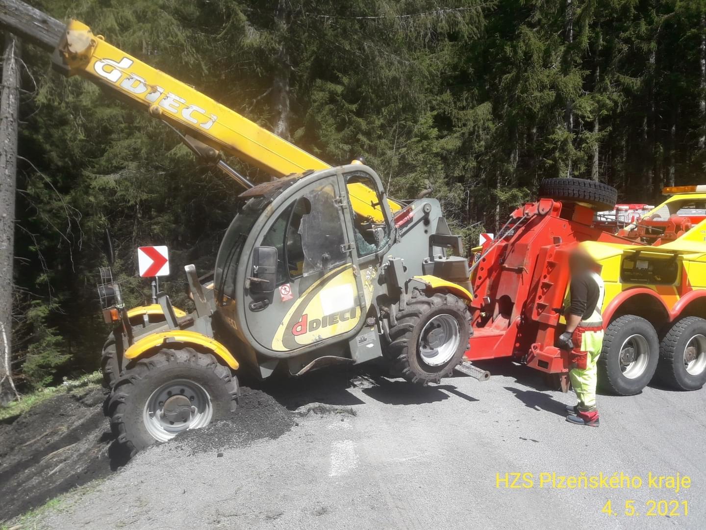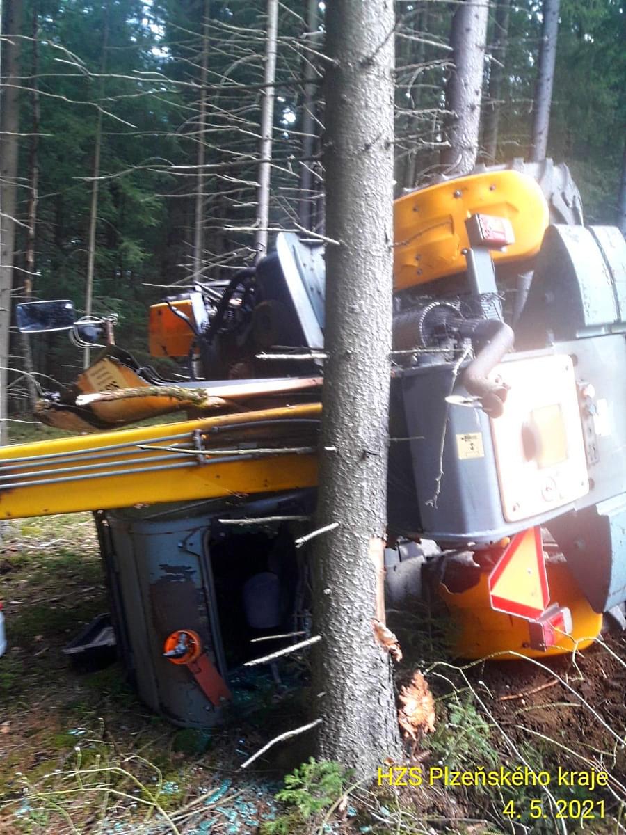 "Při nakládání materiálu na ložnou plochu nákladního vozidlo, padesátiletý muž z Kolinecka při couvání s nakladačem vyjel na nezpevněnou krajnici, která se s vozidlem utrhla a nakladač havaroval mimo komunikaci v lesním porostu. Řidič utrpěl zranění a byl převezen do nemocnice v Klatovech k ošetření," popsala tisková mluvčí policie s tím, že dechová zkouška na alkohol byla u řidiče provedena s negativním výsledkem.