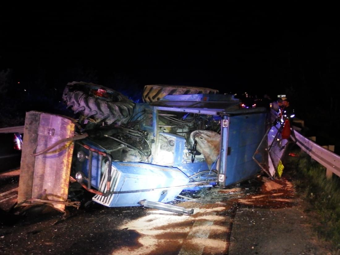 Včera kolem deváté hodiny večer došlo k dopravní nehodě na hlavním tahu z Plzně na Karlovy Vary u Chotíkova, když řidič Škody Superb jedoucí od Plzně narazil do před ním jedoucího traktoru Zetor. Ten se po střetu převrátil.