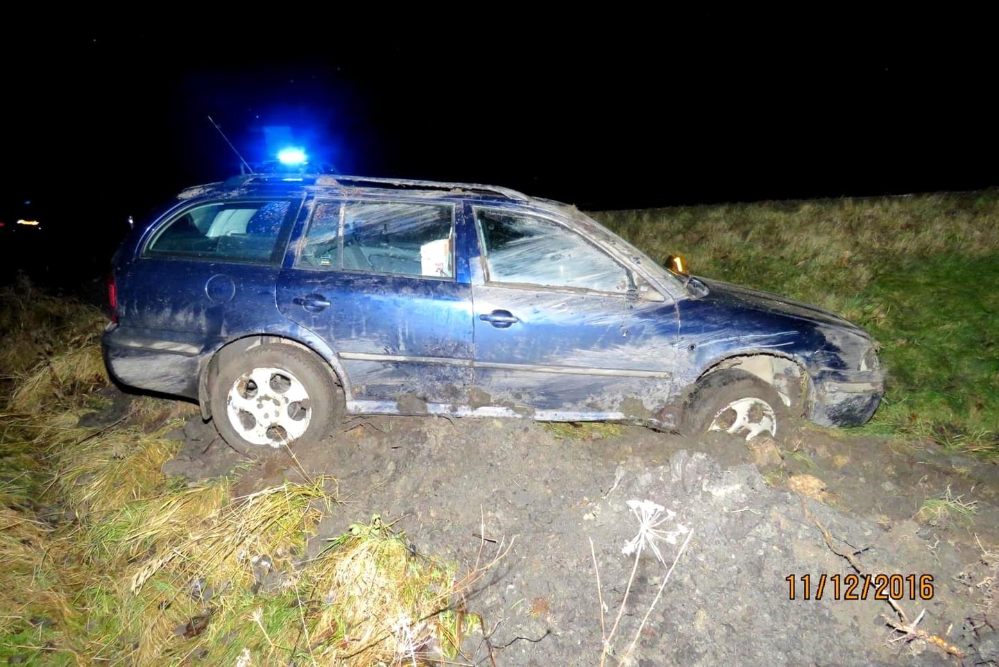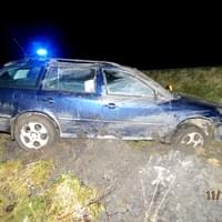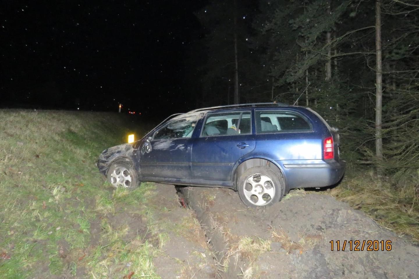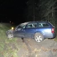 Najel na pravou krajnici, dále vpravo mimo komunikaci do silničního příkopu, kde s vozidlem přes střechu havaroval. Ke střetu s lesní zvěří nedošlo. Při dopravní nehodě utrpěla šestačtyřicetiletá spolujedoucí zranění, se kterým byla převezena do nemocnice k ošetření. Požití alkoholických nápojů před jízdou u řidiče policisté vyloučili dechovou zkouškou.