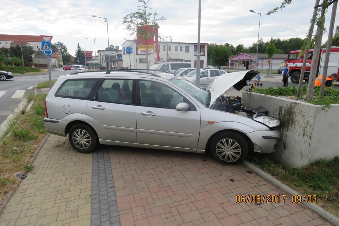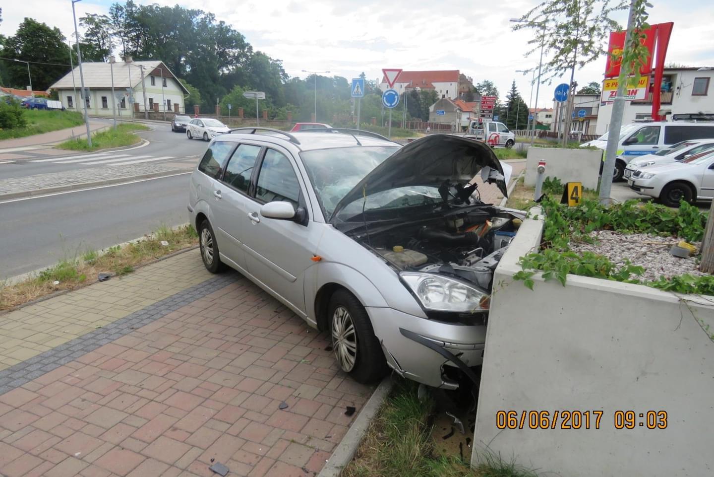 „Pětačtyřicetiletý řidič osobního vozidla tovární značky Ford Focus jedoucí z centra při jízdě na kruhovém objezdu chtěl odbočit vpravo na obec Horšov. Chtěl snížit rychlost, ale spletl si pedál brzdy s pedálem plynu. Místo aby zpomalil, začal zrychlovat, přičemž vyjel z kruhového objezdu do ulice Vrchlického. Přejel do protisměru, dále mimo komunikaci, kde narazil do dopravní značky a do betonového květináče.