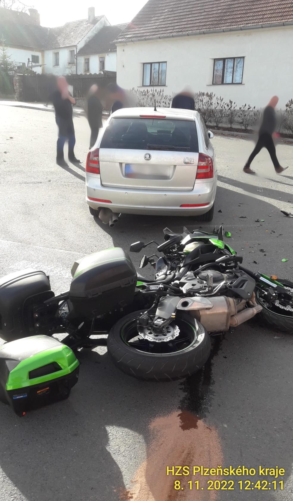 Dnes těsně po poledni došlo ve Velkém Boru na Klatovsku k dopravní nehodě, při které se střetl osobní automobil s motocyklem.