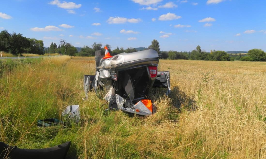 "Jednatřicetiletý řidič osobního automobilu Škoda jel směrem od obce Horšov na obec Mířkov, při jízdě se plně nevěnoval řízení a nesledoval situaci v provozu na pozemní komunikaci, když po projetí ostré levotočivé zatáčky na přímém úseku vjel na pravý okraj komunikace a následně vyjel vpravo mimo komunikaci, kde narazil do stěny silničního příkopu a poté se několikrát přetočil přes střechu," popsala tisková mluvčí policie s tím, že vozidlo následně skončilo v poli na střeše.
