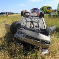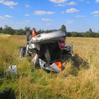 Krátce po třetí hodině odpoledne došlo na silnici II. třídy č. 200 mezi křižovatkami na Nový Dvůr a Křakov na Domažlicku k dopravní nehodě, při které se osobní vůz několikrát převrátil přes střechu.