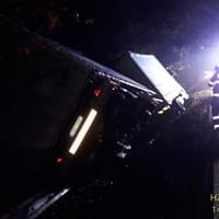 Nákladní souprava skončila mimo komunikaci, řidič utrpěl zranění, k uvolnění nákladu nedošlo. Vozidlo nepřepravovalo nebezpečné látky ani jinak rizikový materiál. Na místo vyjely všechny záchranné složky.