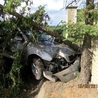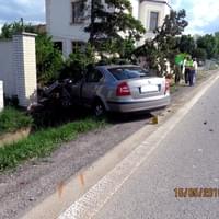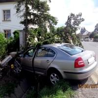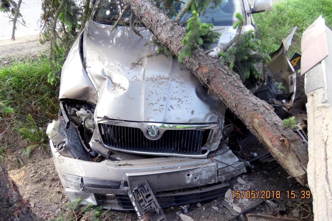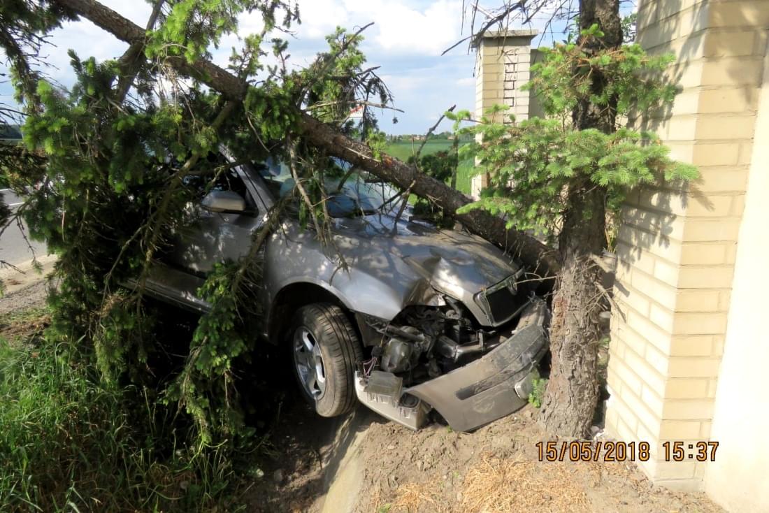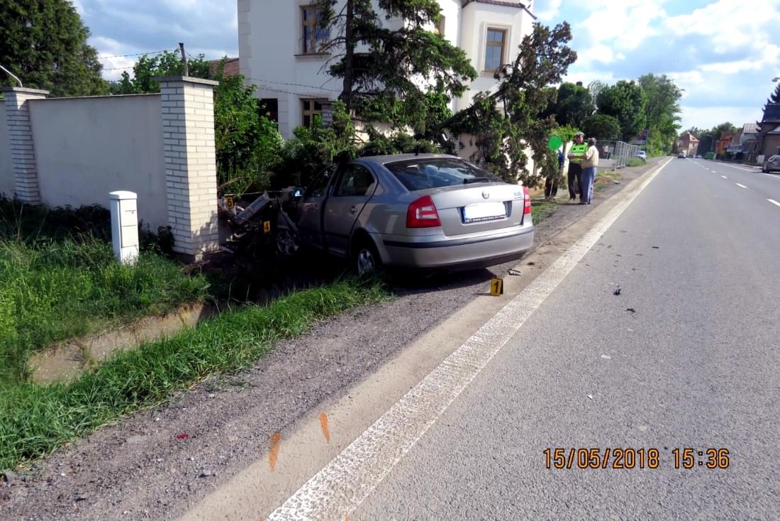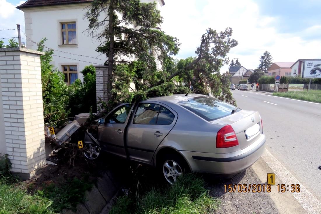 Při nárazu strhl mladík řízení doleva, přejel do protisměru a dále do silničního příkopu, kde postupně narazil do stromu a zděného oplocení.