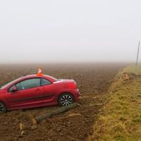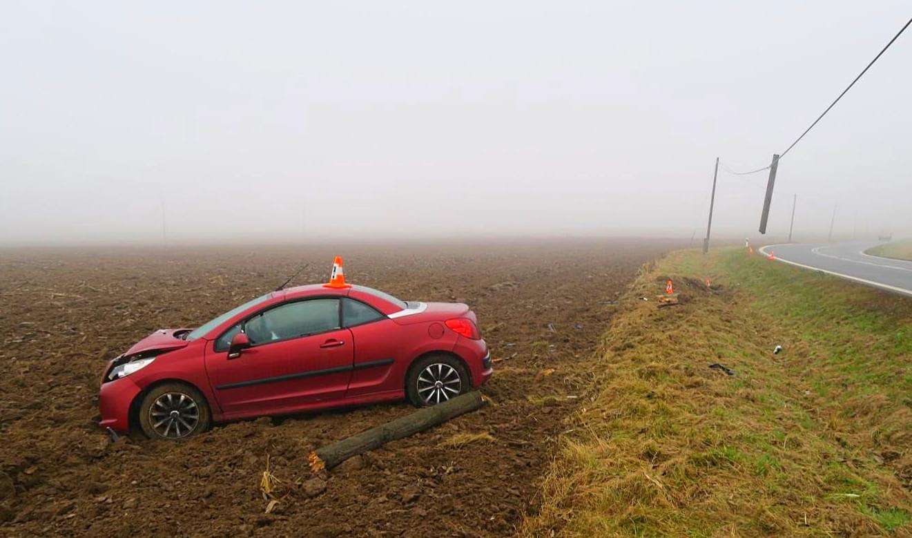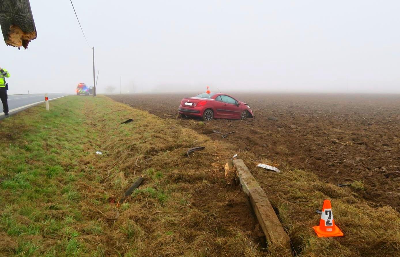 Vyletěl ze silnice, přerazil sloup a skončil v poli