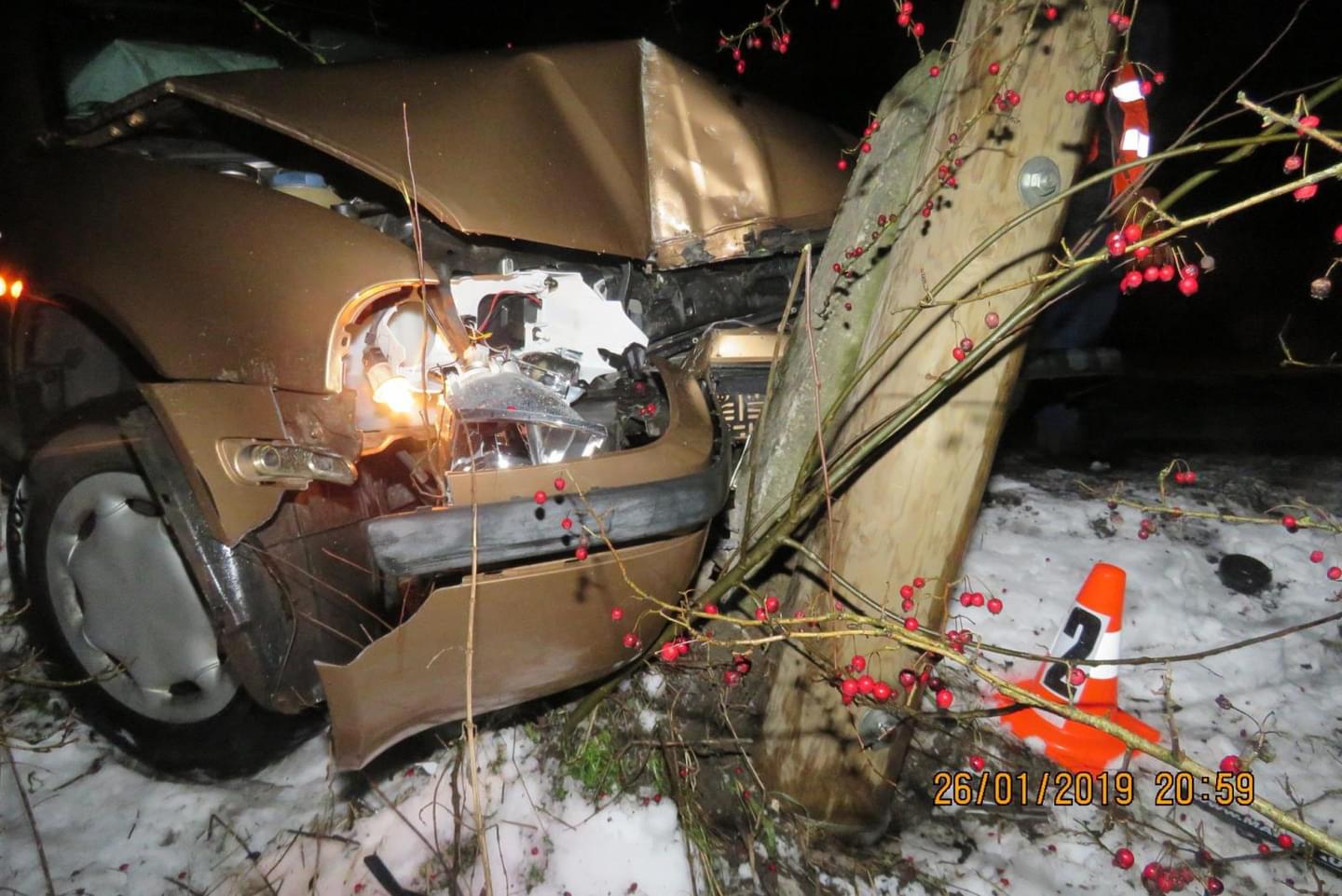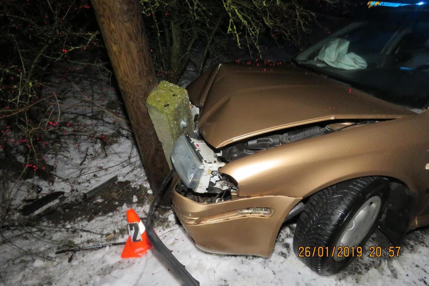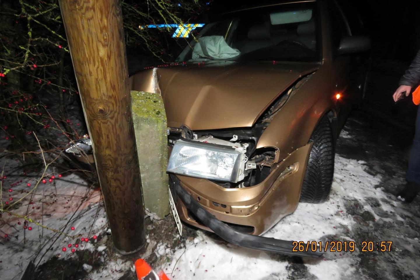 V sobotu 26. ledna v sedm hodin večer došlo v obci Všeruby k havárii, když řidička Škody Octavia jedoucí ve směru od Plání na Všeruby nepřizpůsobila na mokrém a částečně zasněženém povrchu při průjezdu mírnou levotočivou zatáčkou rychlost jízdy a dostala s vozidlem smyk. Škoda vyjela vpravo mimo komunikaci, kde narazila do sloupu telefonního vedení.