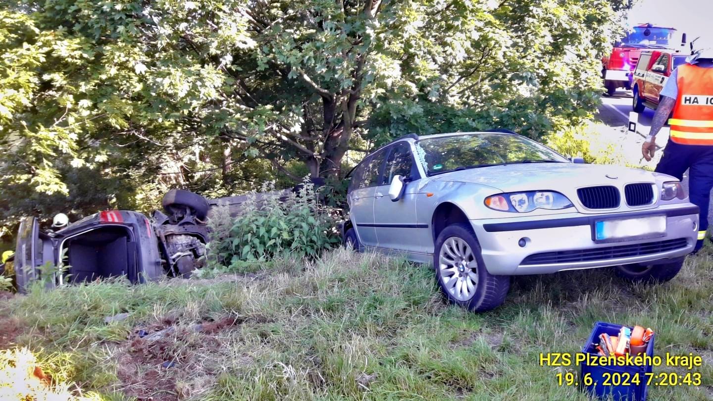 "Řidička osobního vozidla značky Škoda narozená v roce 2000 jela ve směru od obce Milence na Nýrsko, kdy pravděpodobně vlivem únavy měla usnout a s vozidlem přejela do protisměru, kde vlevo mimo komunikaci narazila do dvou zaparkovaných automobilů BMW a Honda. Požití alkoholu bylo u ženy dechovou zkouškou vyloučeno, škoda byla předběžně vyčíslena na částku 300 000 tisíc korun," doplnila tisková mluvčí policie.
