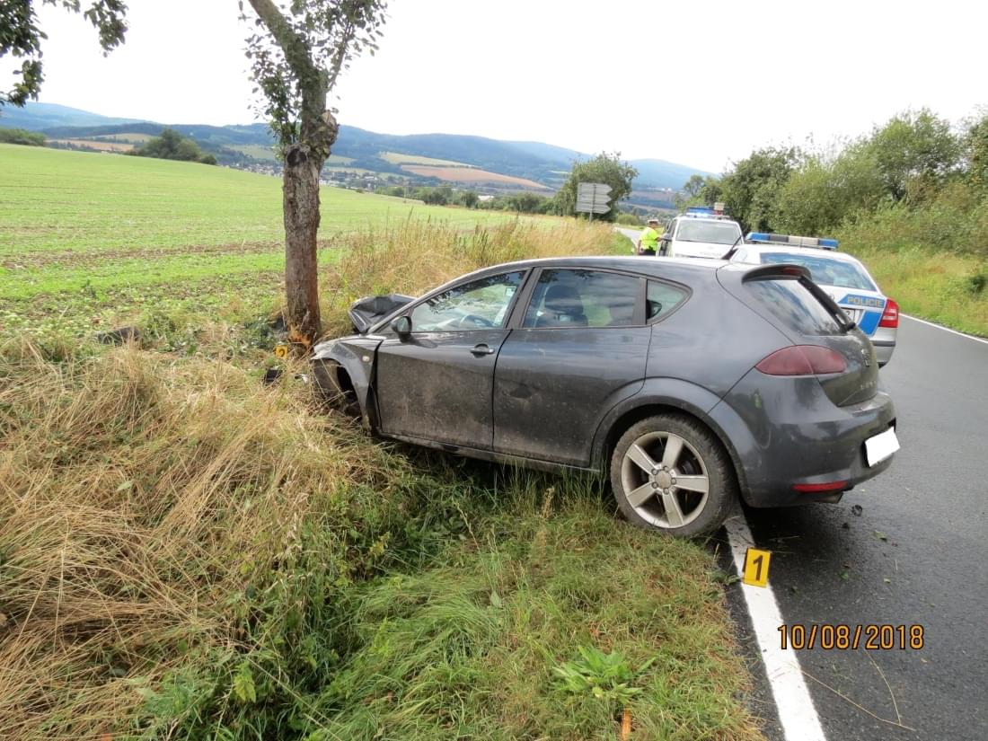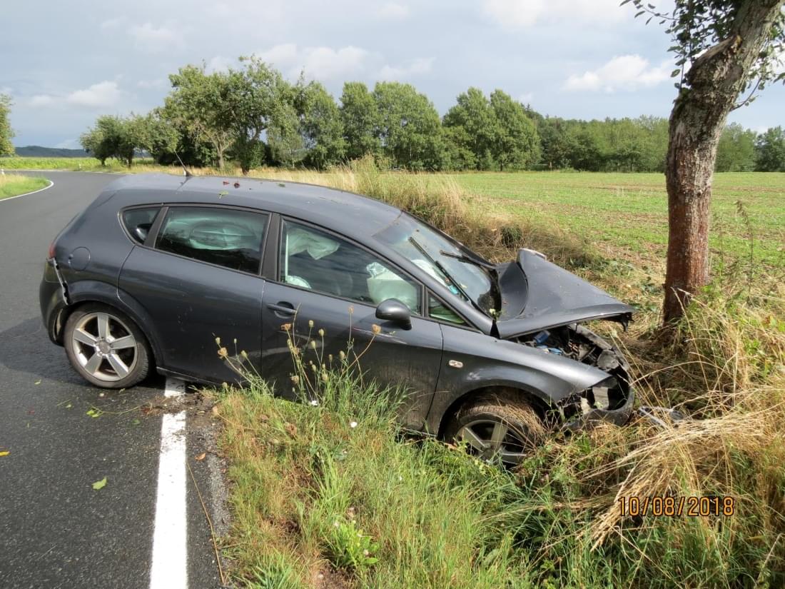 Řidička osobního automobilu Seat Leon jedoucí ve směru od Hadrovce na Trhanov v mírné pravotočivé zatáčce na mokrém povrchu vjela do protisměru a dále vlevo mimo komunikaci, kde narazila do kovového sloupku svislé dopravní značky a následně do stromu. Při dopravní nehodě utrpěla zranění, se kterým byla transportována na ošetření do domažlické nemocnice.