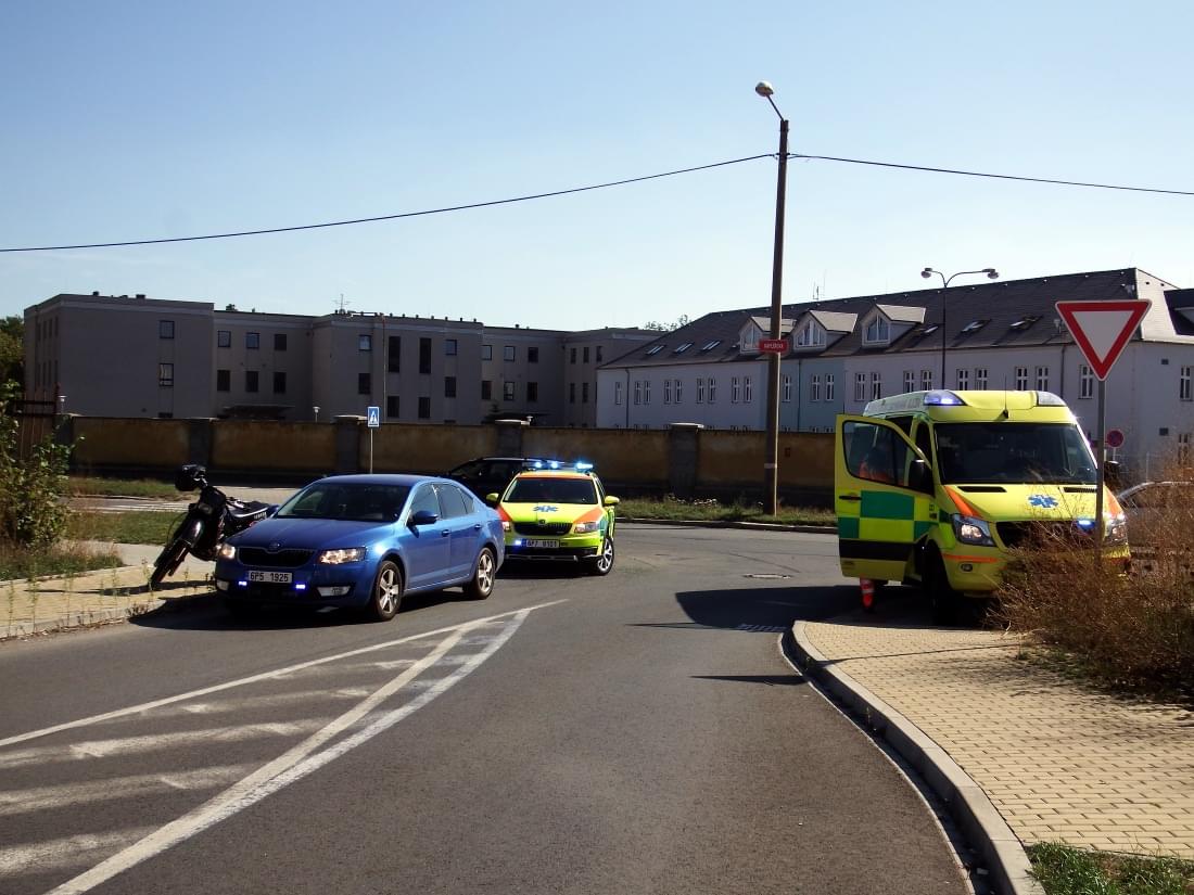 Mladý motocyklista jel Kaplířovo ulicí ve směru na Borská pole a starší řidička vyjíždějící z vedlejší ulice mu dle všeho nedala přednost. Motocykl tak narazil do levých předních dveří vozu.