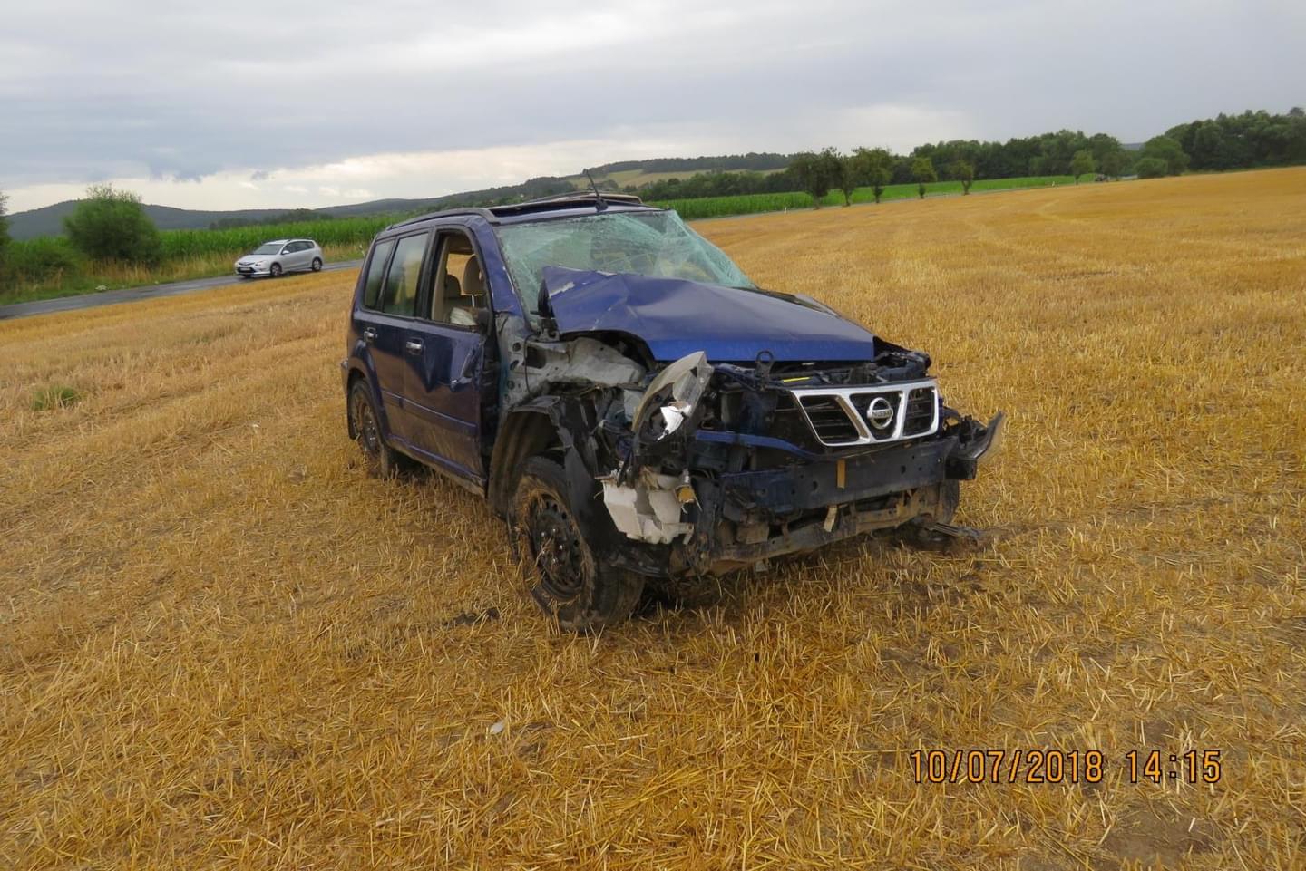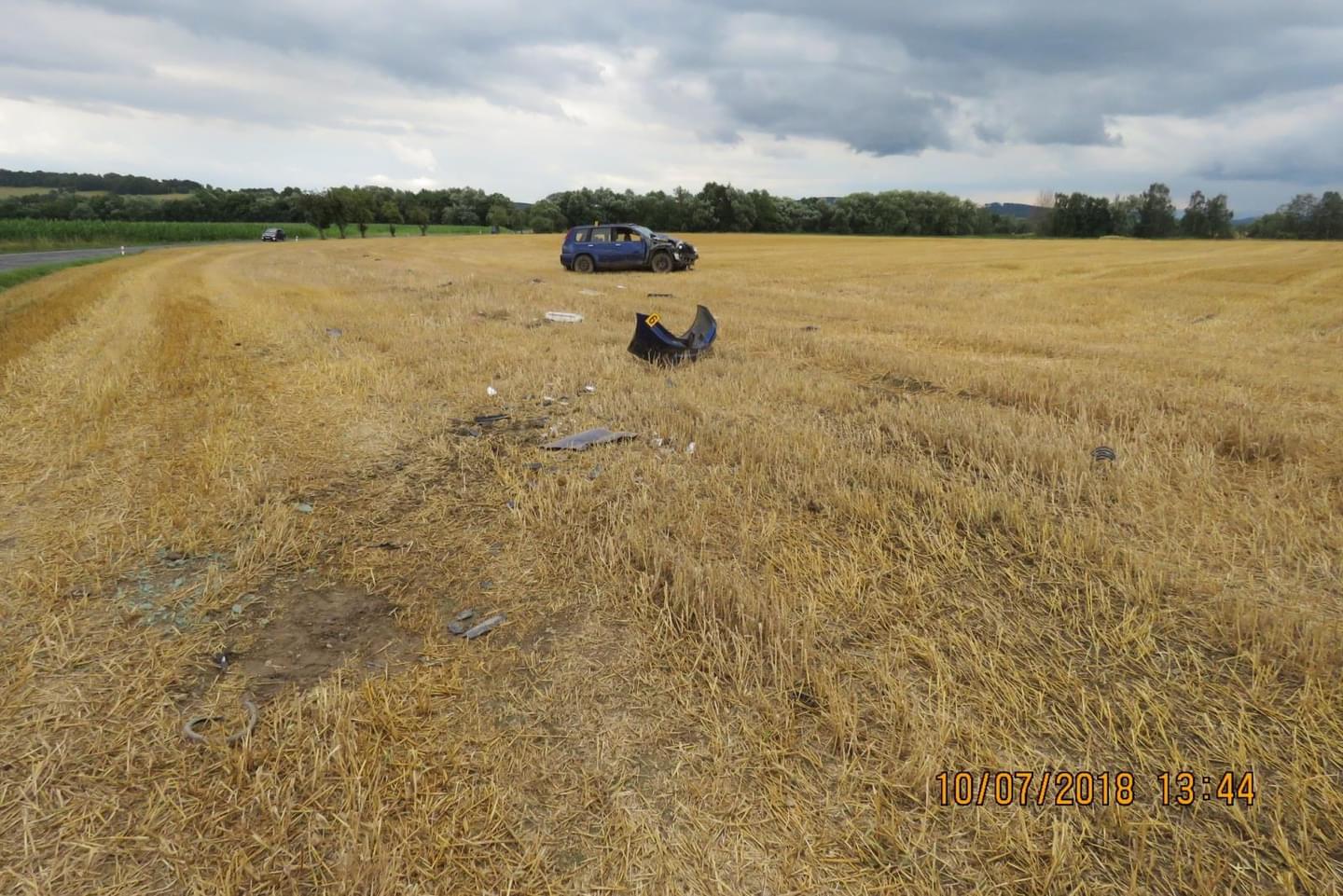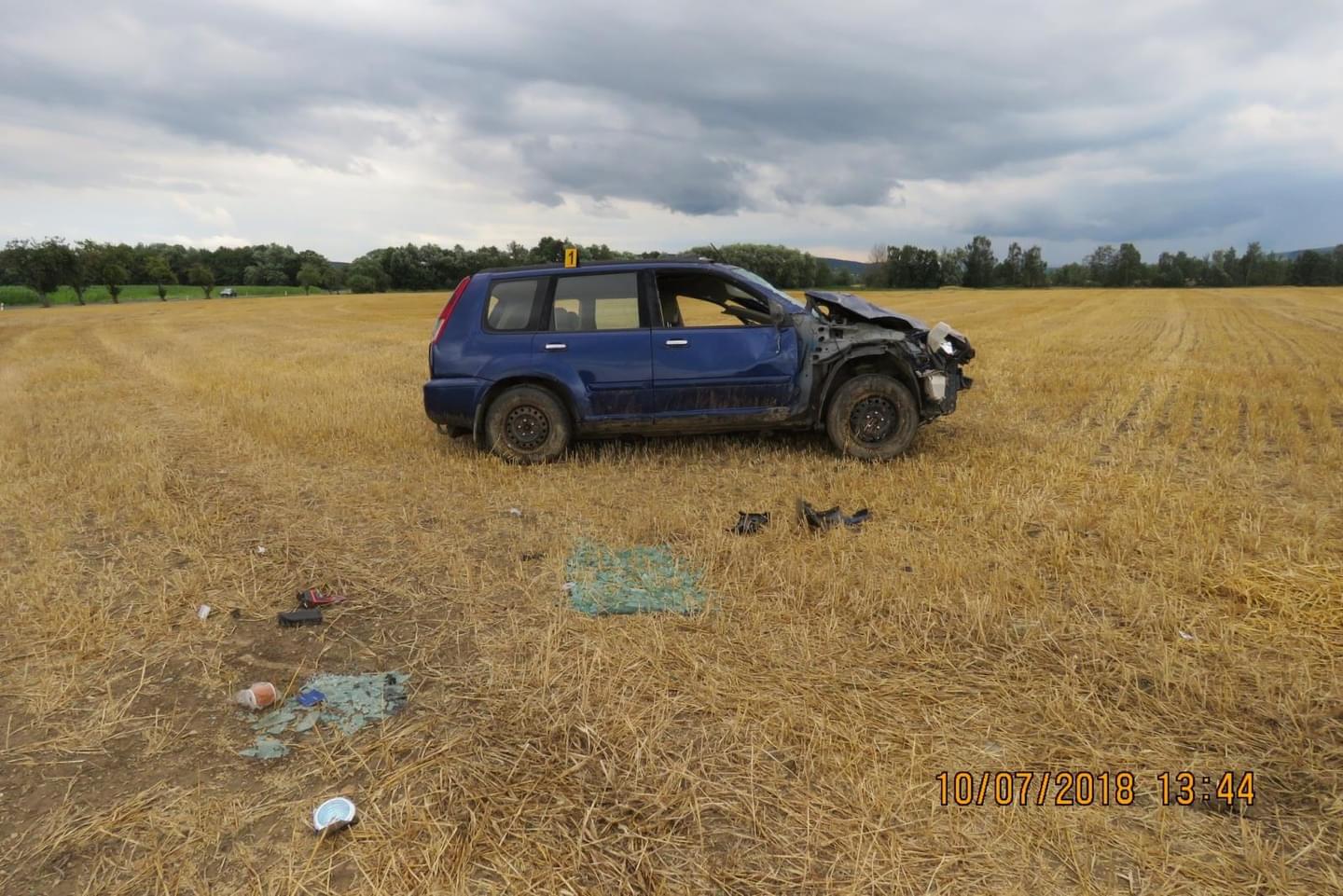 Osmatřicetiletá řidička osobního vozidla tovární značky Nissan jela od Nového Kramolína na Ždánov, při průjezdu levotočivé zatáčky nepřizpůsobila rychlost jízdy a s vozidlem vjela na pravou krajnici, kde sjela do pravého silničního příkopu a následně na strniště, kde s vozidlem havarovala.