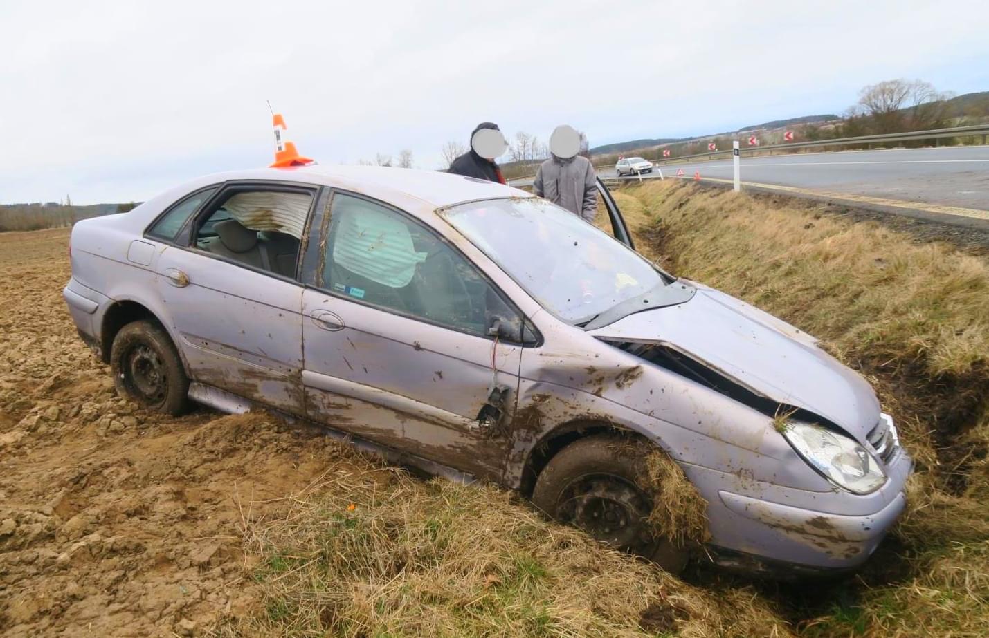 Včera před čtvrtou hodinou odpoledne došlo na silnici mezi Mířkovem a Horšovem k havárii osobního vozu mimo silnici. "Dvaatřicetiletá řidička osobního vozidla Citroen C5 jedoucí od Miřkova na Horšov nepřizpůsobila rychlost jízdy, při projíždění pravotočivé zatáčky dostala na mokrém povrchu s vozidlem smyk, vjela na pravý okraj komunikace, vyjela vpravo mimo komunikaci a dále do silničního příkopu, kde s vozidlem havarovala," popsala tisková mluvčí policie.