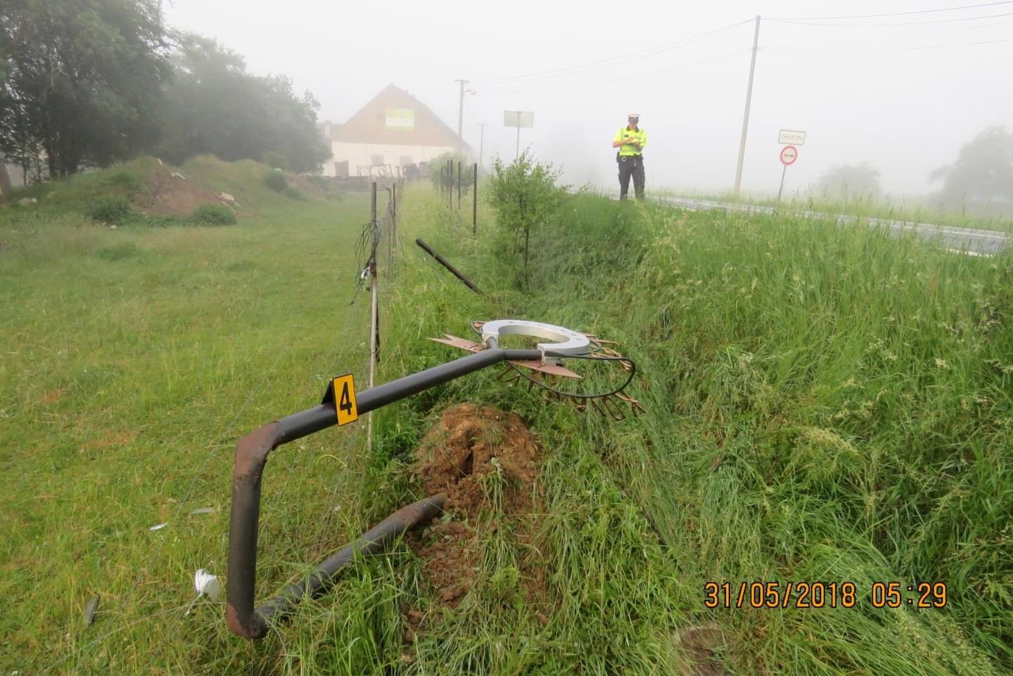 Žena najela s vozidlem na pravou krajnici a sjela vpravo mimo pozemní komunikaci do silničního příkopu,kde narazila do oplocení, reklamního sloupu, přejela zahradu, další zahradu a narazila do dalšího oplocení, kde se vozidlo zastavilo.