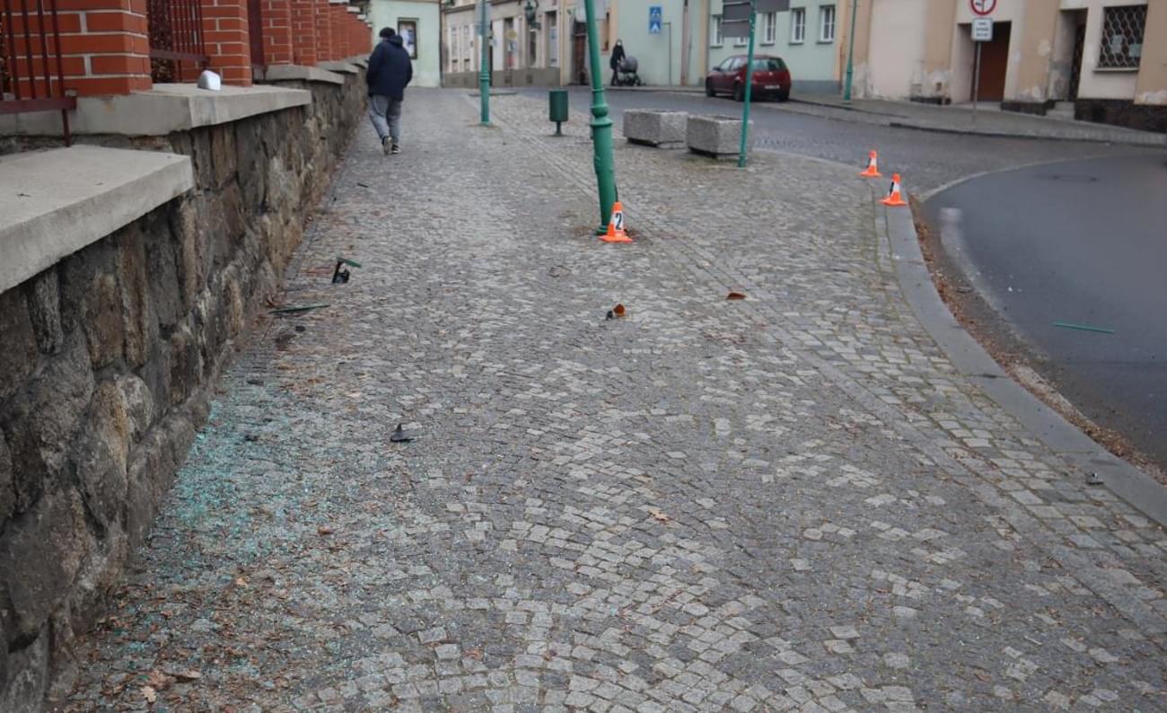 Na místě nehody zůstalo uražené zpětné zrcátko, kousky plastů z vozidla a rozbité autosklo.
