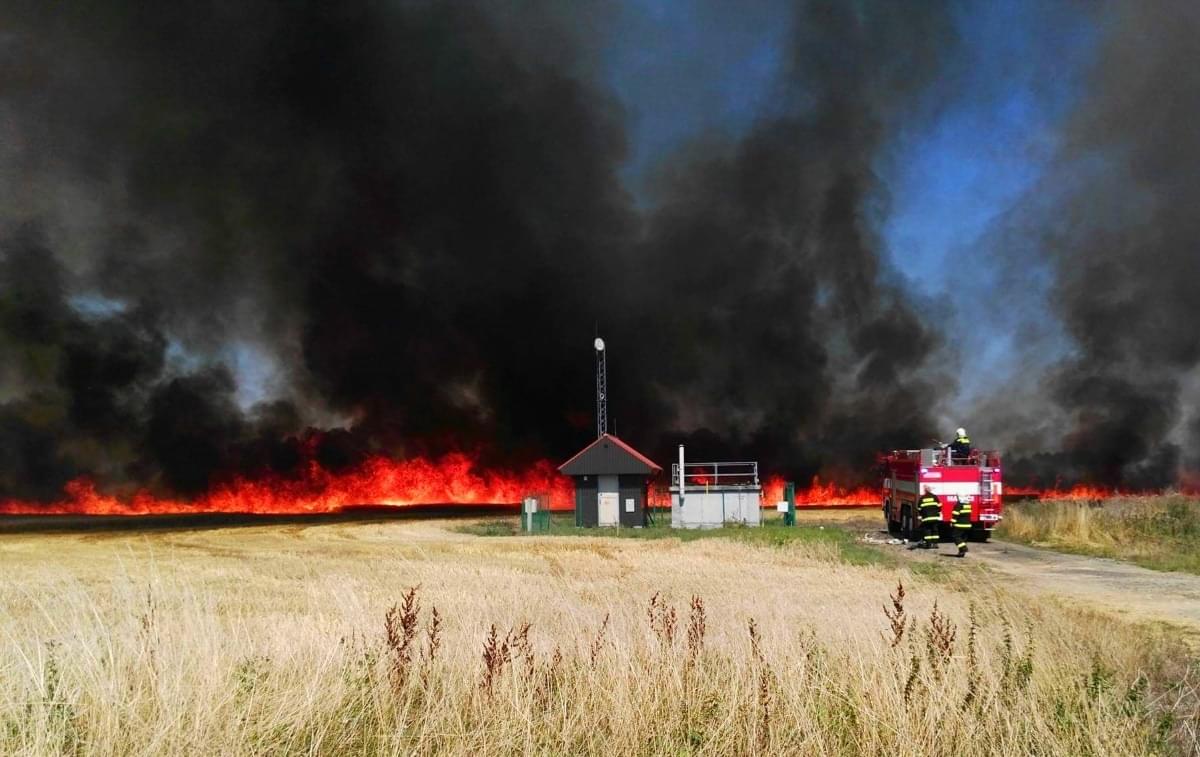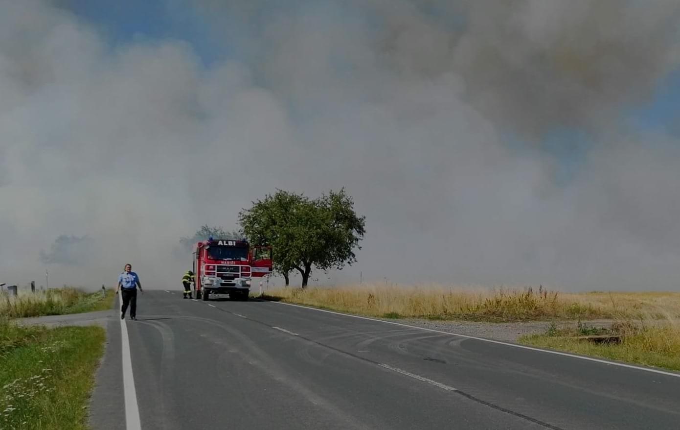 Po druhé hodině odpoledne zasahovalo několik jednotek hasičů u rozsáhlého požáru pole u Těchlovic, který se rychle šířil. Vítr oheň rozdmýchával a hnal na silnici, takže hasiči museli požádat policii o uzavření komunikace.