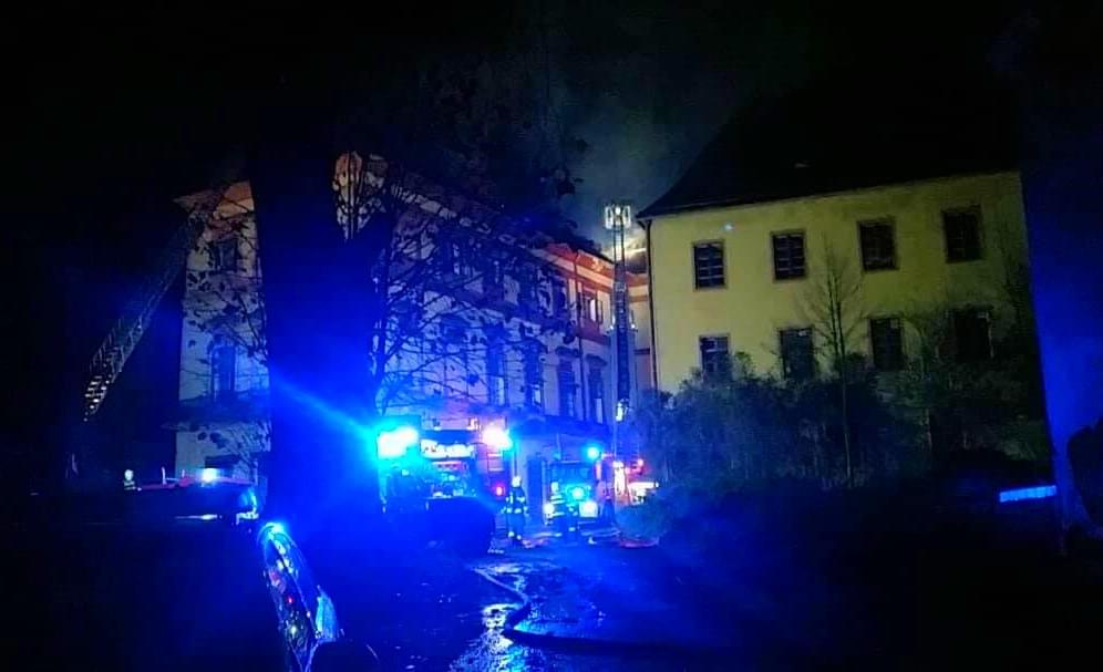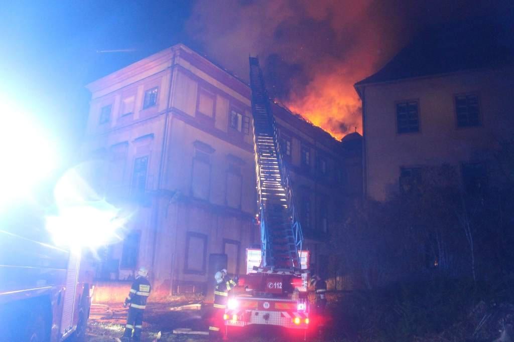 Požár zachvátil střechu a podkroví celého křídla zámku. Hasiči měli velké problémy během zásahu uvnitř budovy, protože stavba je v dezolátním stavu a trámy i podlahy jsou prohnilé. Hasiči se tedy museli stáhnout ven z budovy a hasit mohli pouze z venku a z výškové techniky. Vydatně pomohla speciální Cobra z Plzně, o které jsme psali již mnohokrát.