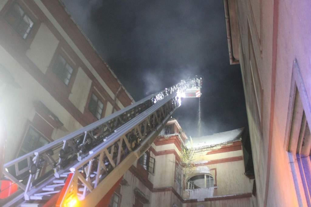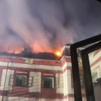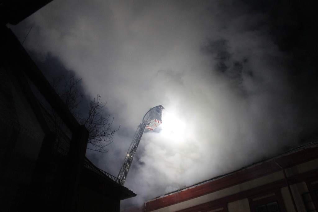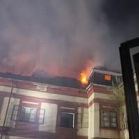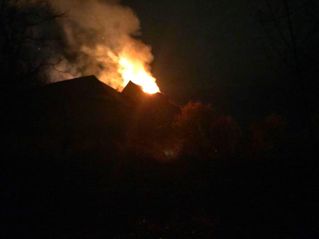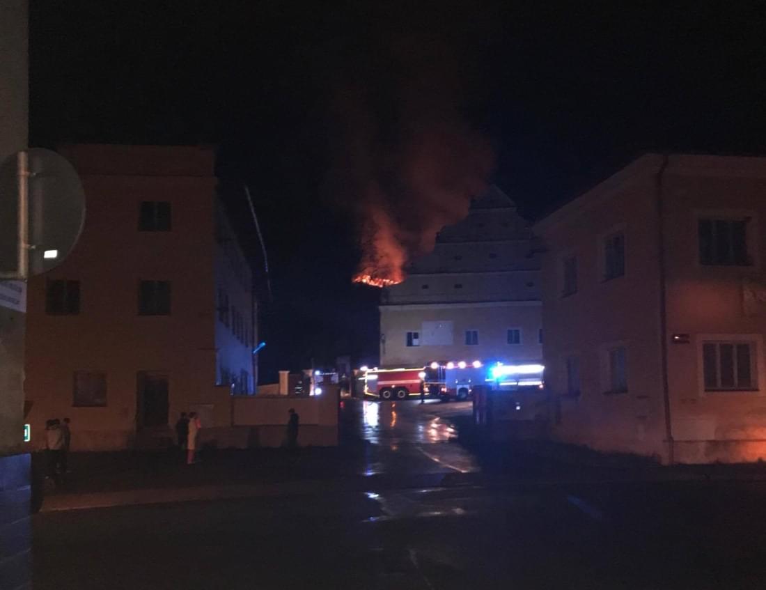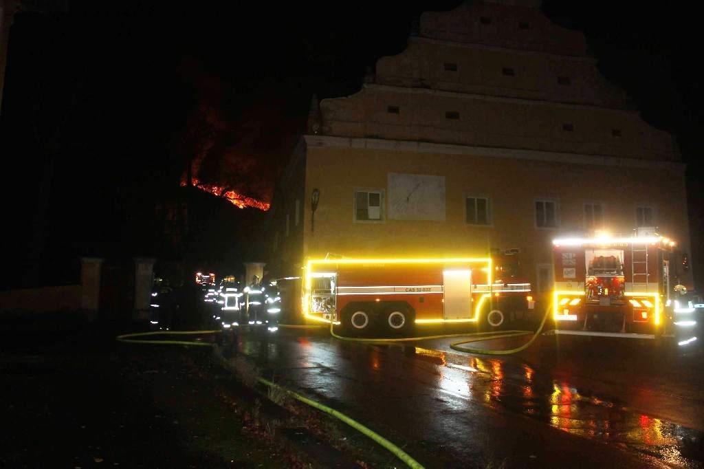 Podle svědků hoří střecha, plameny jsou vidět již z několikakilometrové vzdálenosti a během hašení se část střechy propadla.