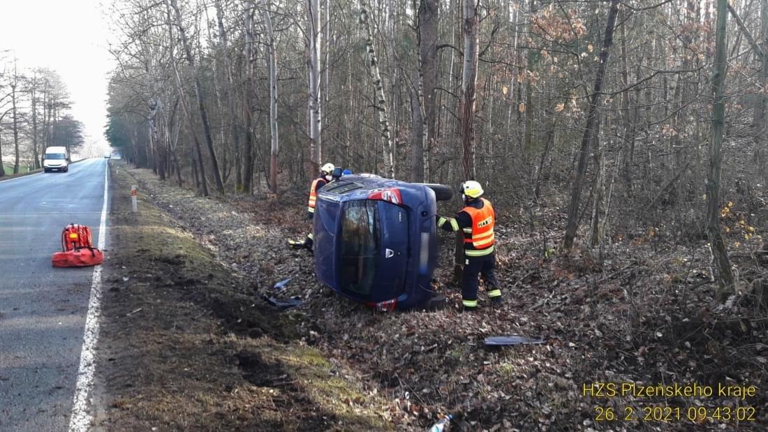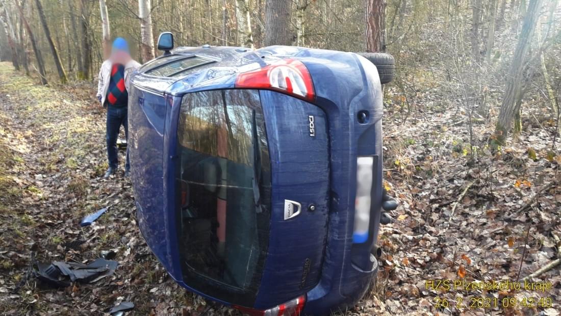 Dnes v půl desáté dopoledne došlo na silnici mezi Kozolupy a Myslinkou k havárii osobního vozu Dacia Sandero, který po vyjetí ze silnice narazil bokem do stromu a v silničním příkopu se převrátil na bok.
