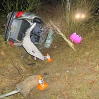 K vážné havárii osobního vozu mezi Meclovem a Horšovským Týnem v prostoru před chatovou osadou Podhájí došlo včera před desátou hodinou večer.