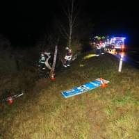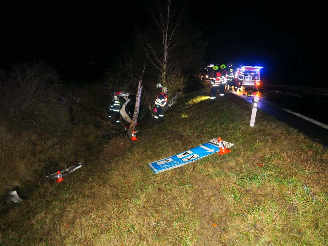 Ve vozidle, které zůstalo v příkopu ležet na pravém boku, zůstal zaklíněný řidič a na místo vyjely všechny záchranné složky. Vzhledem k závažnosti události na místo také vzlétl vrtulník LZS.
