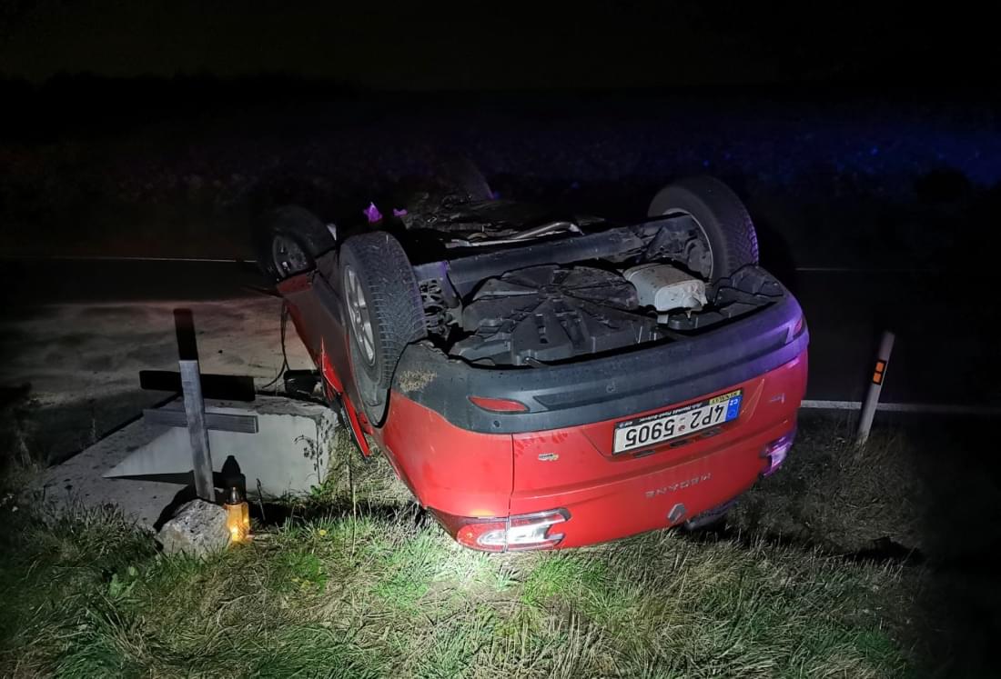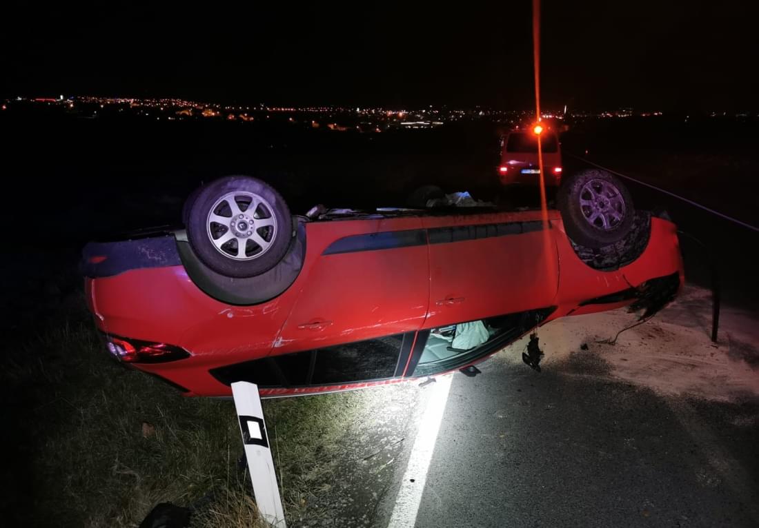 Dnes po páté hodině odpoledne došlo nedaleko Božkova k havárii osobního vozu, který se převrátil mimo silnici na střechu.