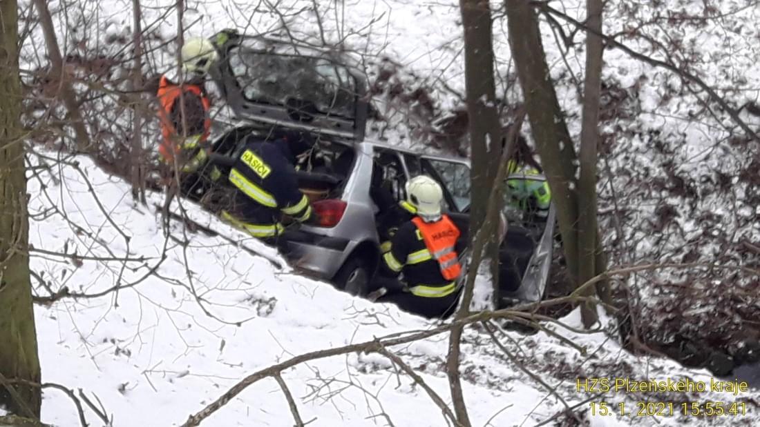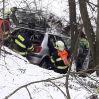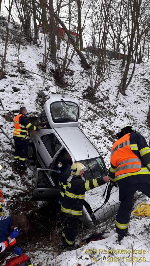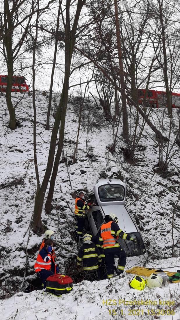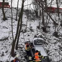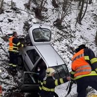 Při pádu vozu z dvacetimetrového srázu utrpěli zranění dva lidé
