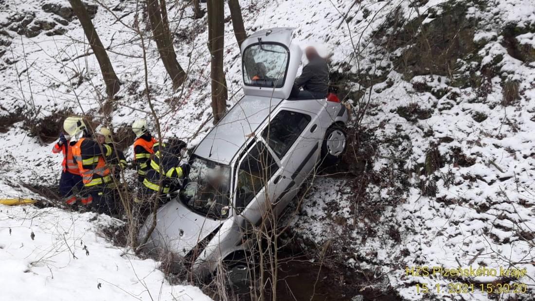 "Řidič narozený v roce 1957 ve směru od Sedlecka na Střapole a z dosavadního šetření vyplývá, že při projížděni pravotočivé zatáčky nepřizpůsobil rychlost jízdy, nezvládl řízení, po projetí zatáčky dostal smyk a přejel do protisměru a dále mimo komunikaci," popsala tisková mluvčí policie. Auto sjelo z dvacetimetrového srázu do potoka.
