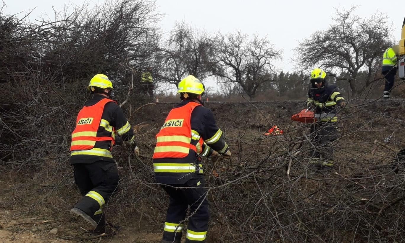 Hasiči zajistili místo události a provedli protipožární opatření. Po deváté hodině dopoledne se hasiči na místo vrátili, aby prořezáním křoví v okolí komunikace umožnili odtahové službě vozidlo vyprostit.