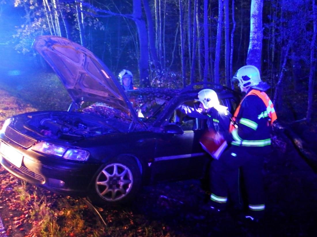 Dnes po jedné hodině ráno došlo na hlavním tahu z Karlových Varů ve směru na Plzeň před obcí Chotíkov k havárii osobního automobilu Opel Vectra. Řidič vyjel vpravo mimo vozovku, kde příkopem pokračoval přibližně 80 metrů, narazil do dopravního značení, přerazil strom a až po nárazu do dalšího stromu se zastavil.