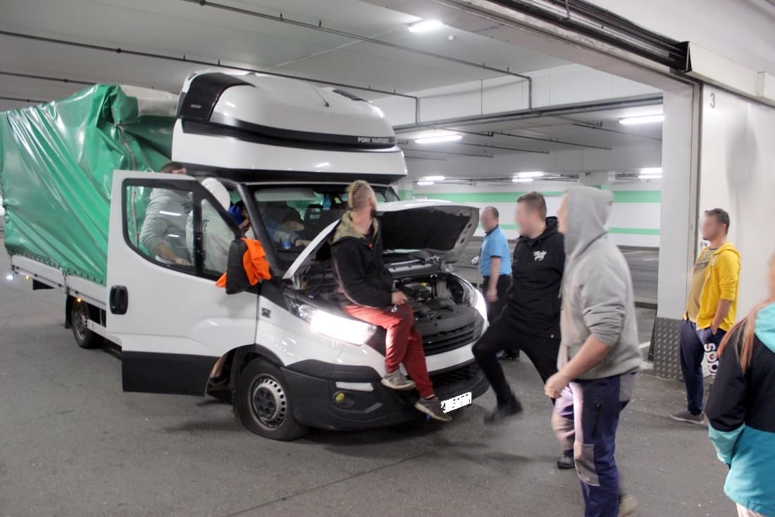 Po absolvování dechové zkoušky, která vyloučila požití alkoholu a vyřešení všech náležitostí, včetně zaplacení pokuty za způsobenou dopravní nehodu vyvstala otázka, jak uvízlou dodávku vyprostit. Na pomoc přispěchali mladí automobiloví nadšenci, kteří se v garážích Tesca scházejí, pomohli řidiči ufouknout gumy a zatížit předek vozu, aby mohl bez dalšího poškození vycouvat. Ruce k dílu přiložili i při rozebírání poškozené nástavby a dodávka tak v krátké době přestala blokovat průjezd a řidič mohl v klidu počkat na náhradní vozidlo a přeložení nákladu.